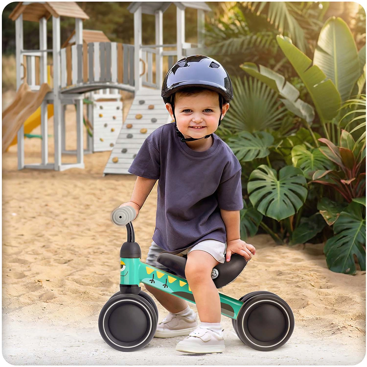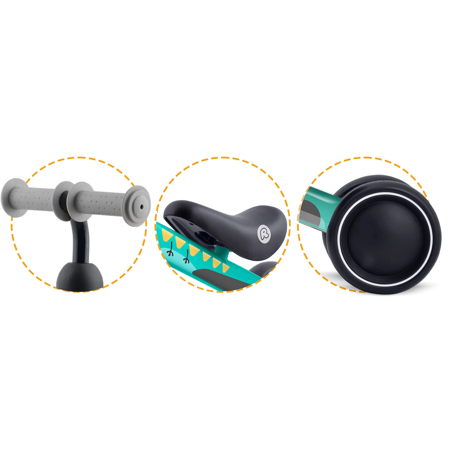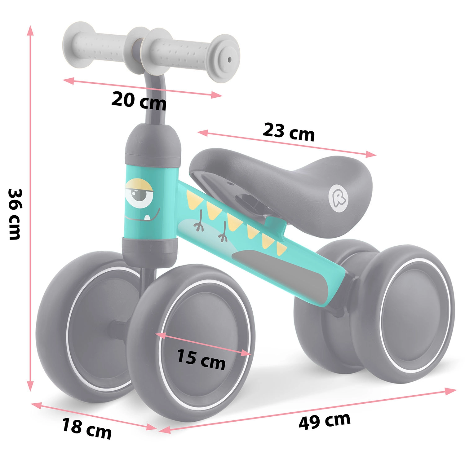 Štirje/široka kolesa iz trpežne plastike zagotavljajo odličen oprijem in stabilnost za varno učenje ravnotežja že od prvih korakov.