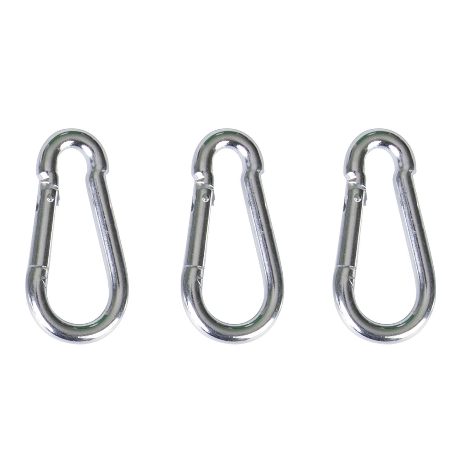 Tri vzdržljive karabine s samodejnim vzmetnim zapiralom olajšajo obešanje in menjavo dodatkov. Primerno za verige, obroče in vrvi.