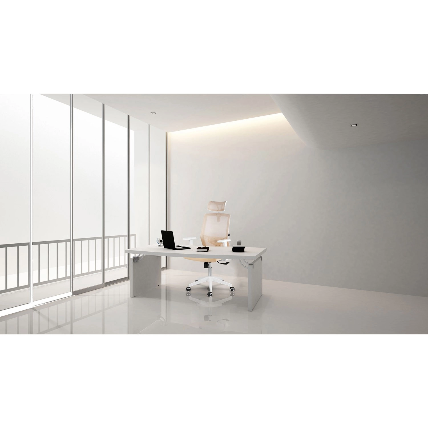 Naslon iz fine mikromrežice zagotavlja stalno kroženje zraka, ergonomsko oblikovanje z ledveno oporo pa pomaga pri pravilni drži telesa med delom.