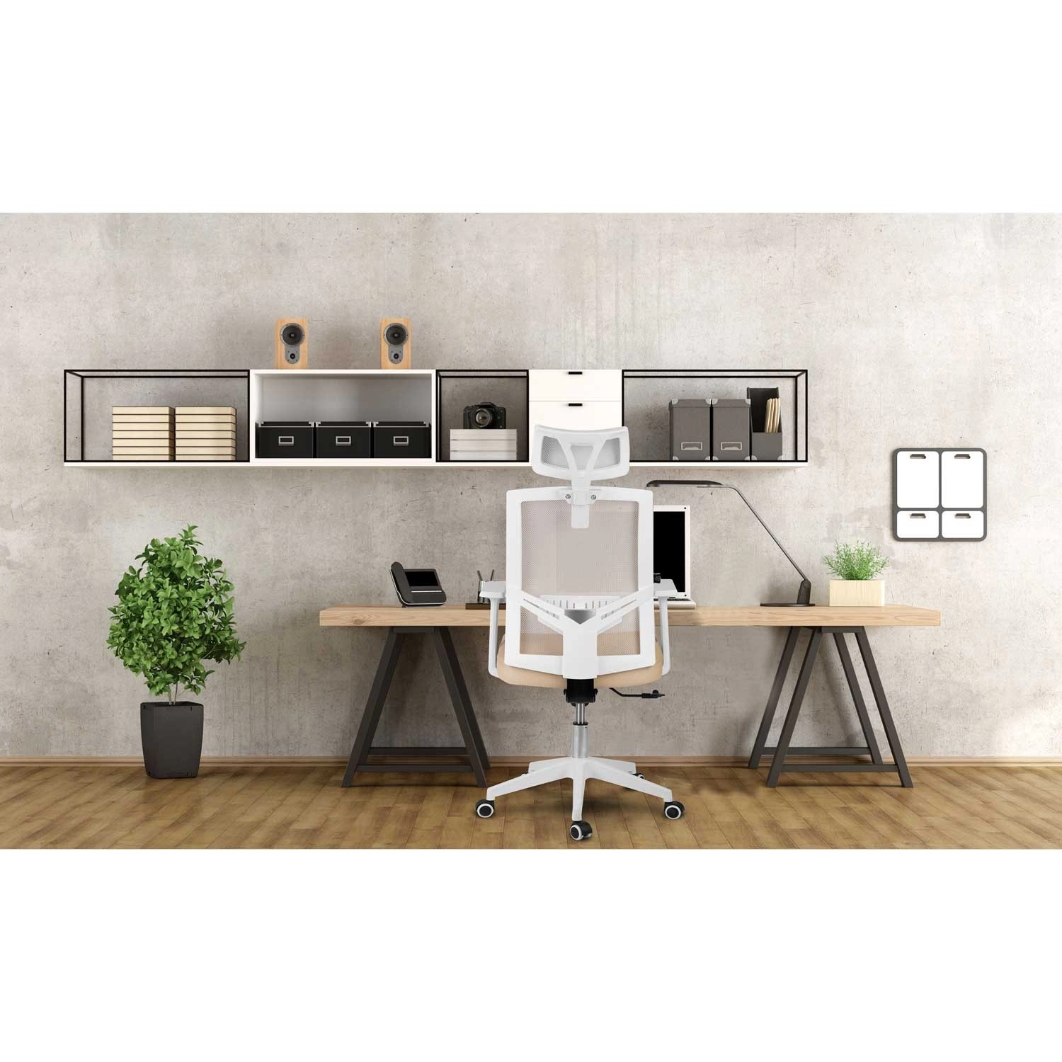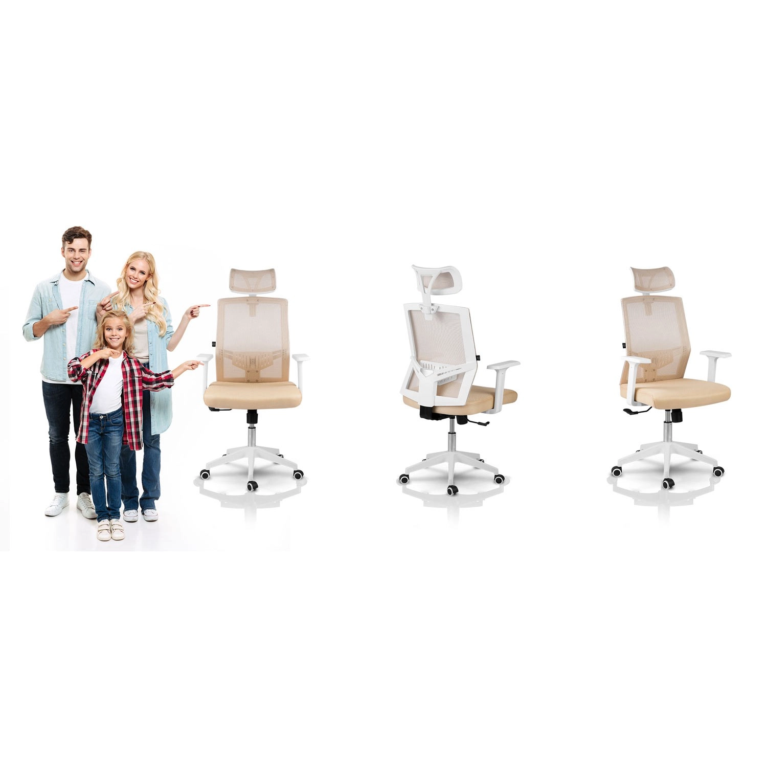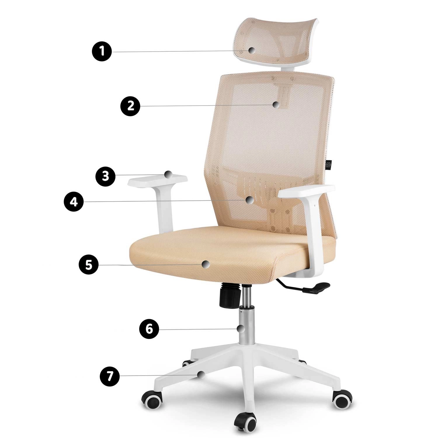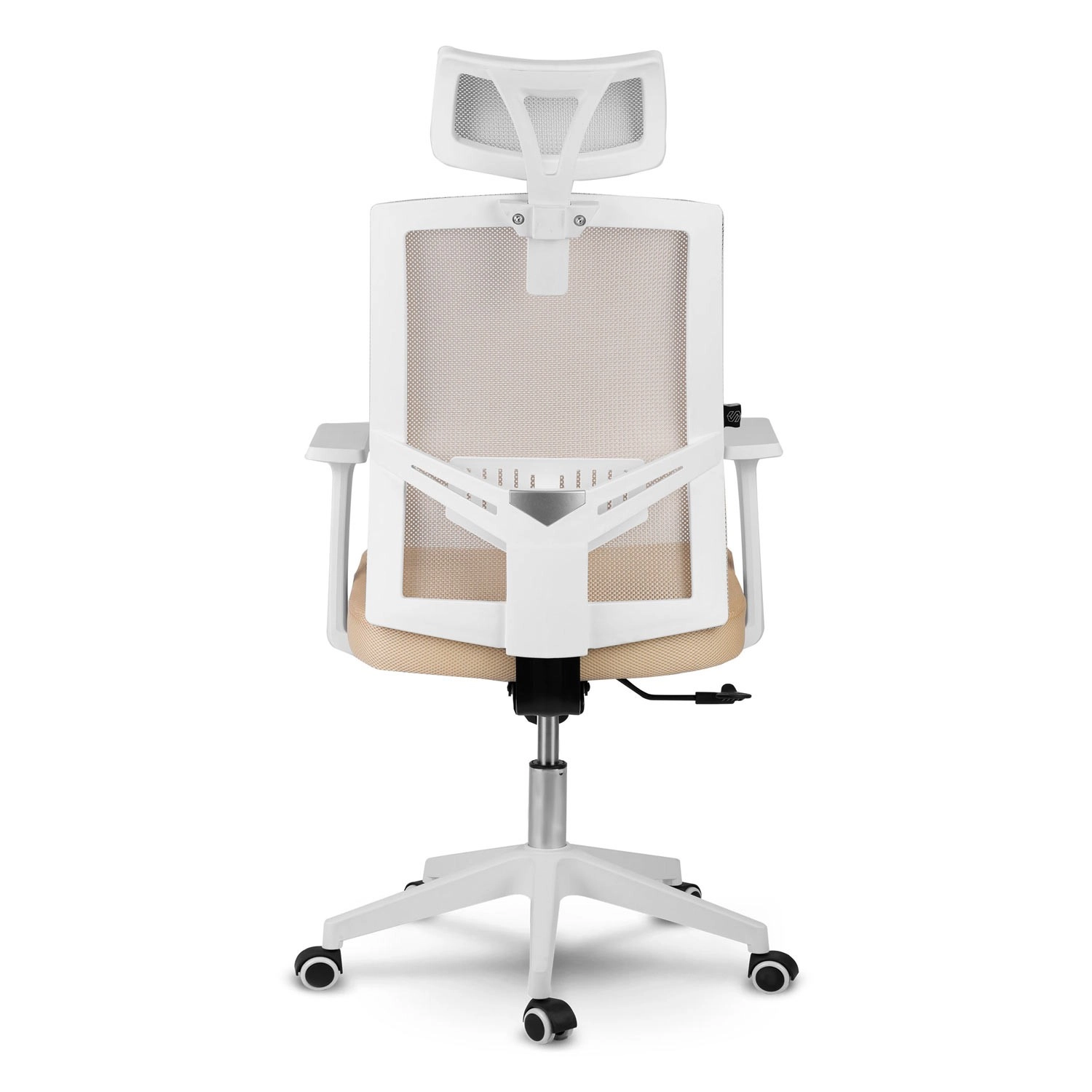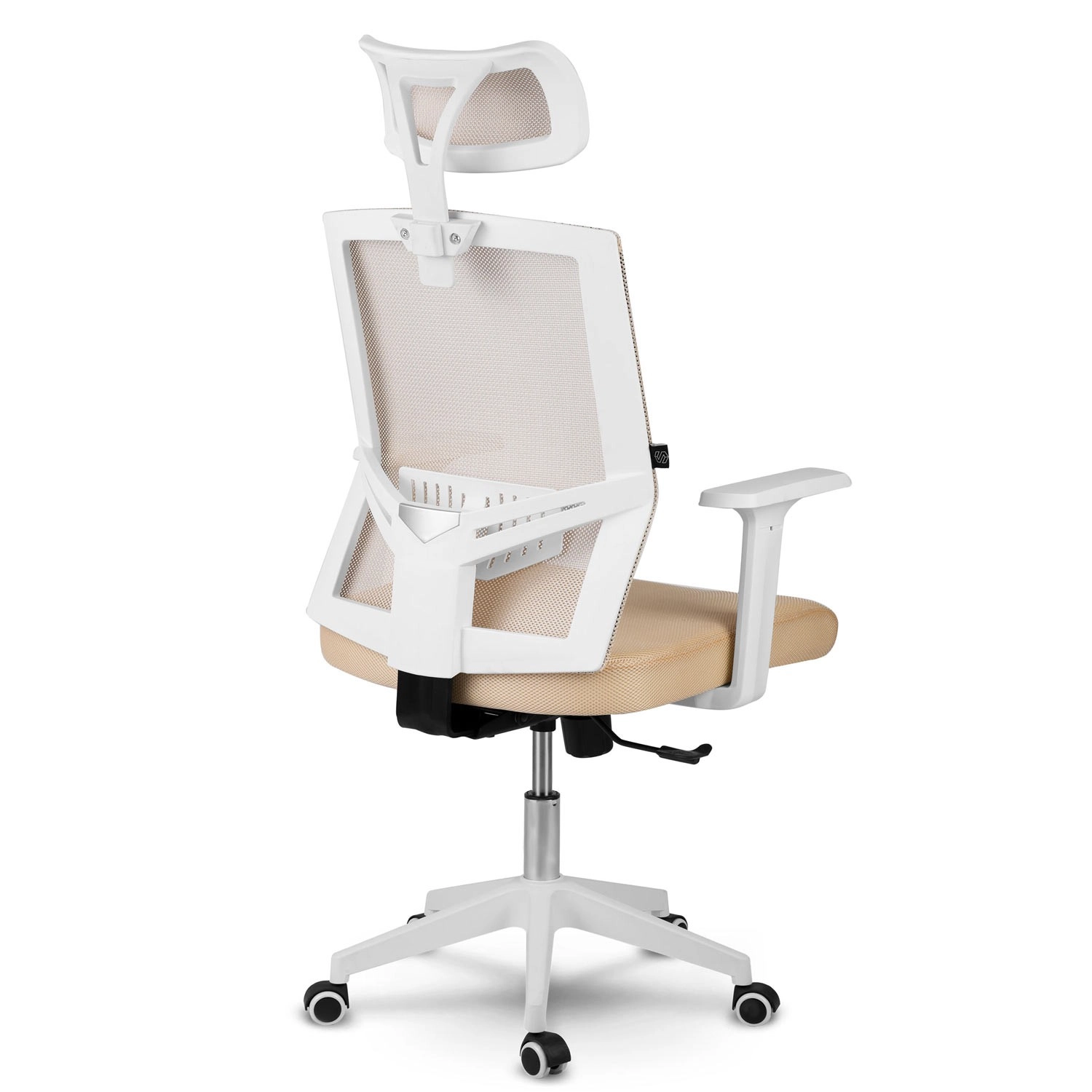 Slogoven in udoben pisarniški stol Sofotel Rotar v bež barvi združuje zračno mikromrežico, ergonomsko oblikovanje z ledveno oporo in nastavljiv vzglavnik. Ponuja tekoče nastavljanje višine, gugalni mehanizem z možnostjo blokade ter tihi gumirani koleščki, ki ne opraskajo tal.