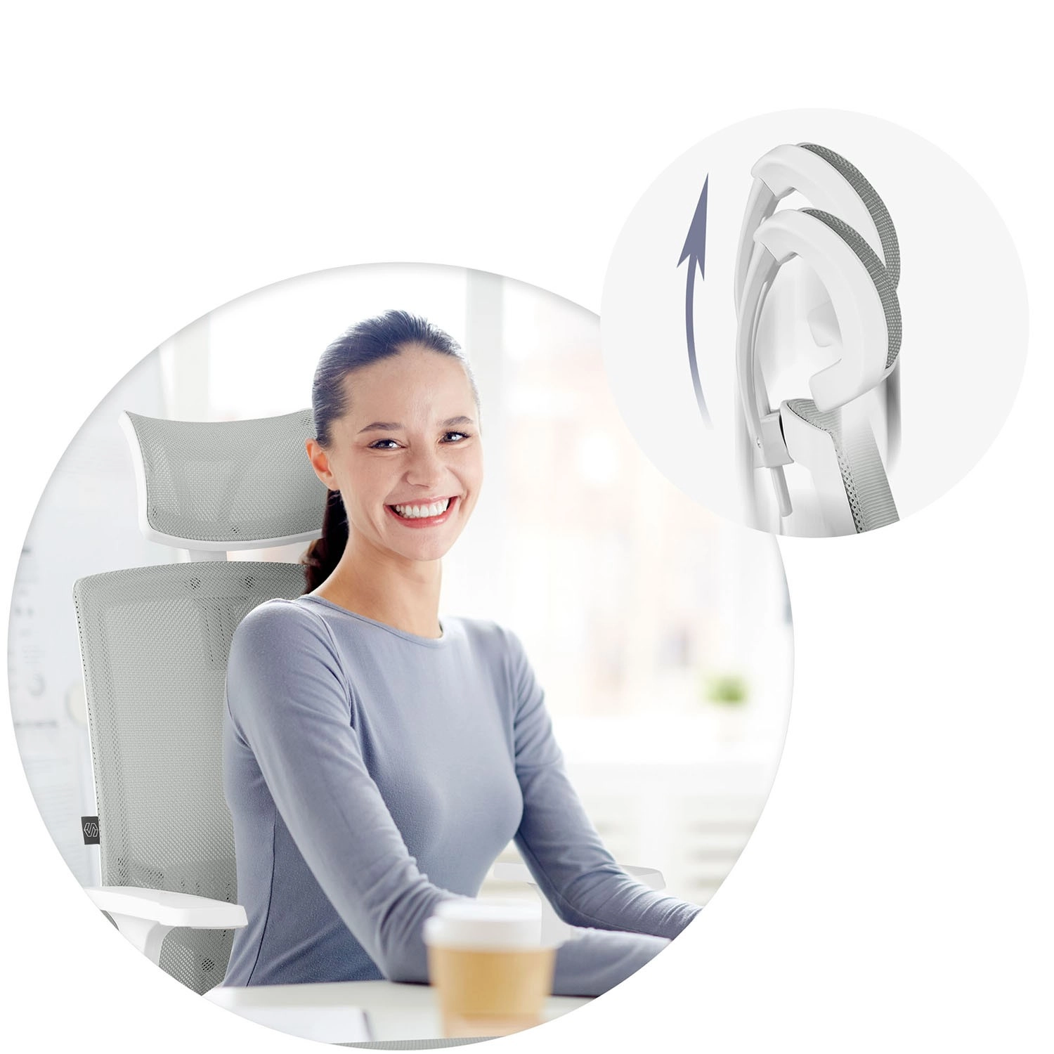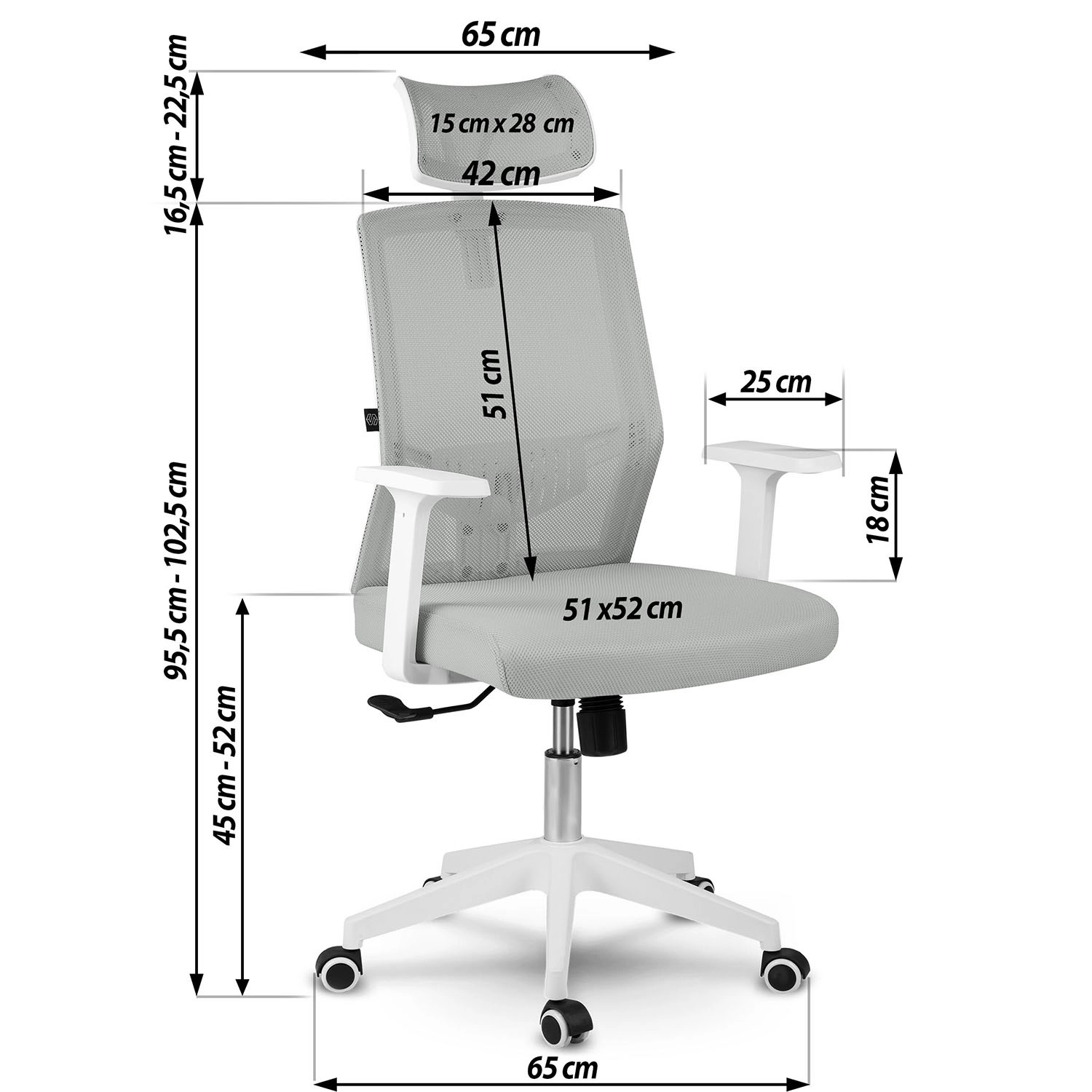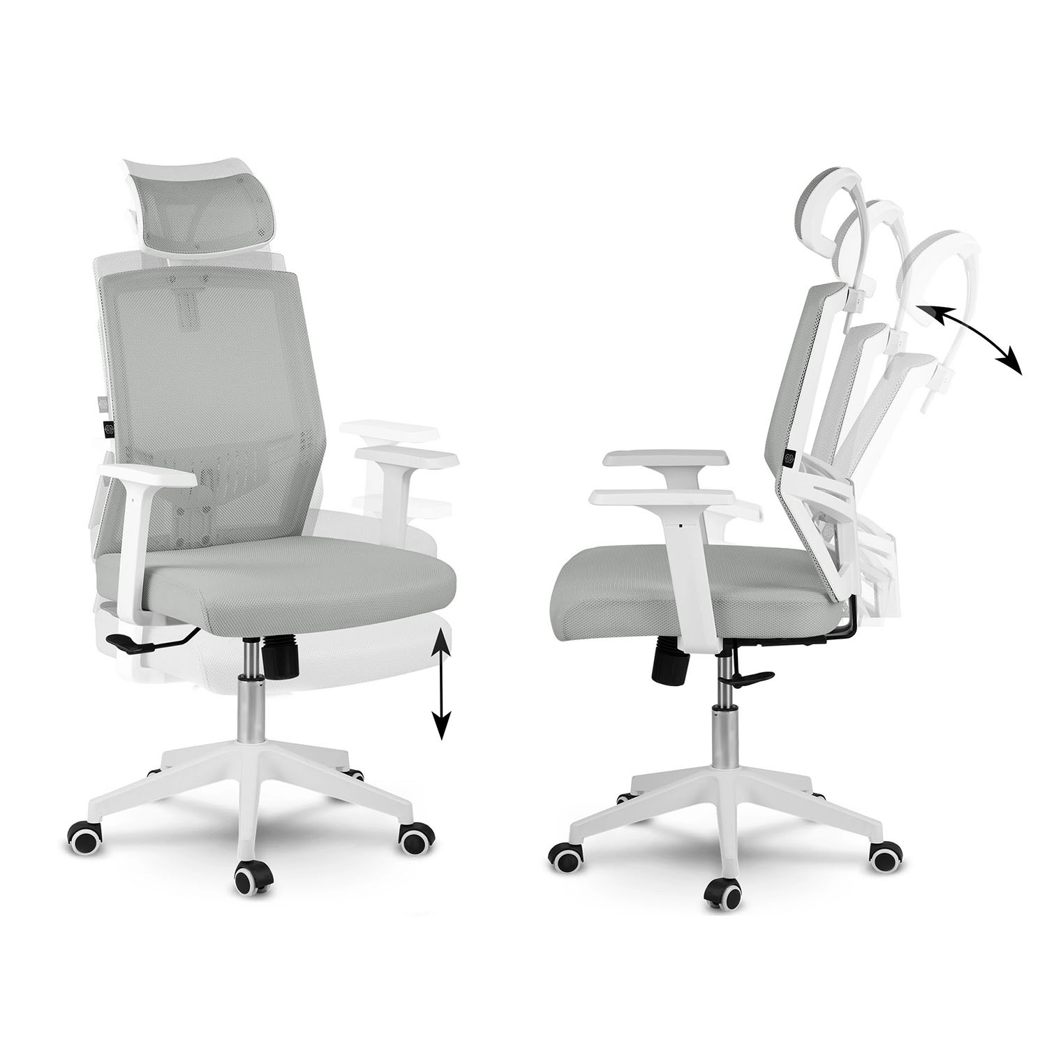 Enostavno ga prilagodite: nastavljiv vzglavnik, gugalni mehanizem z možnostjo aretacije v navpičnem položaju in praktični naslonjala za roke pomagajo razbremeniti vrat, hrbet in ramena pri dolgotrajnem sedenju. Čiste linije in sodoben dizajn diskretno dopolnijo vsak interier.