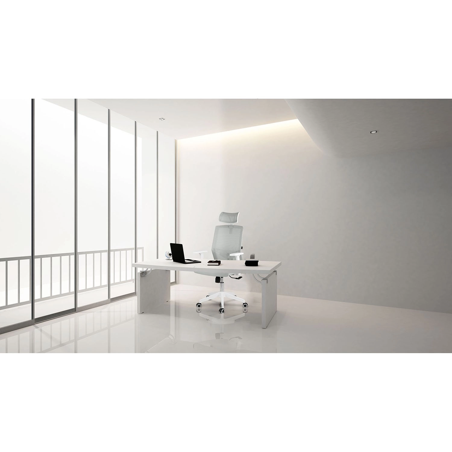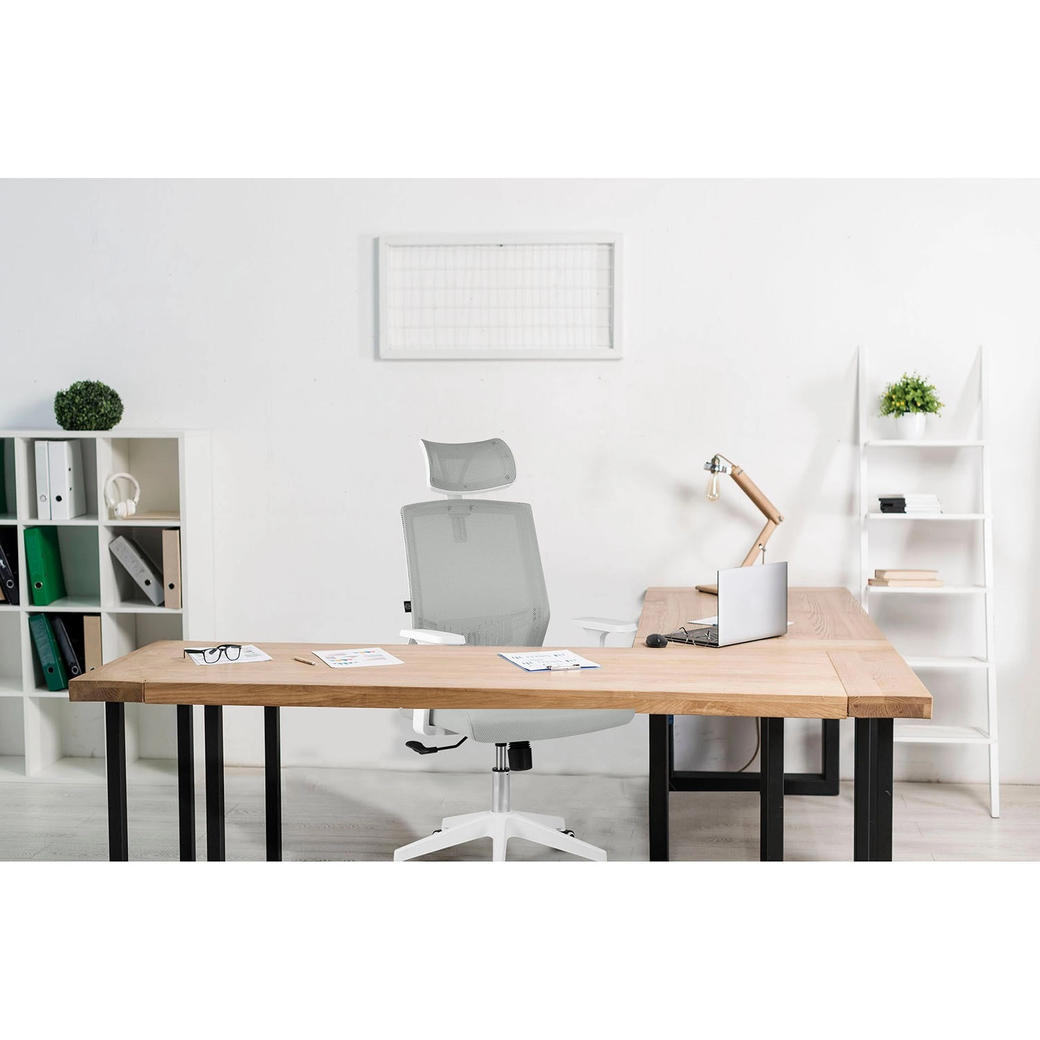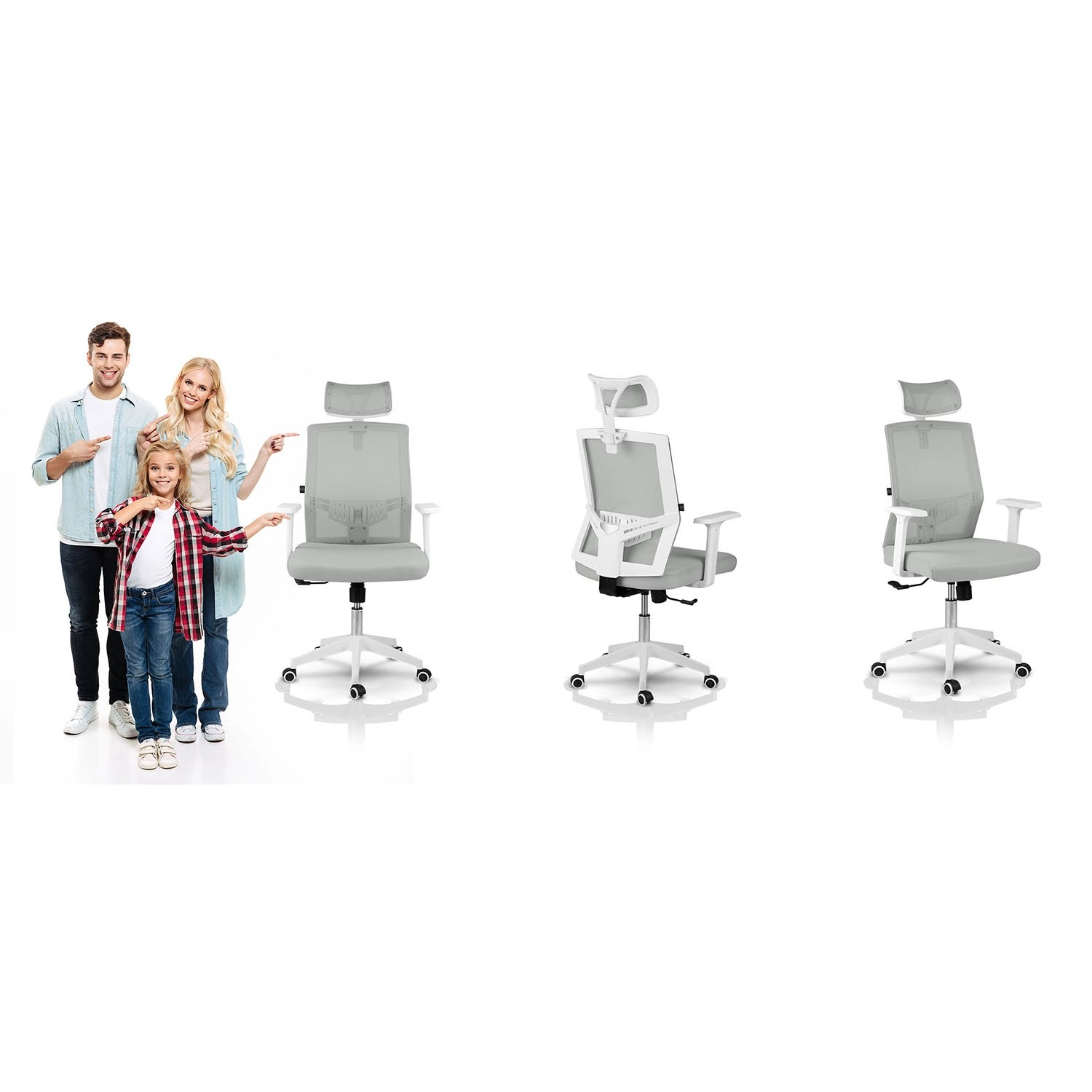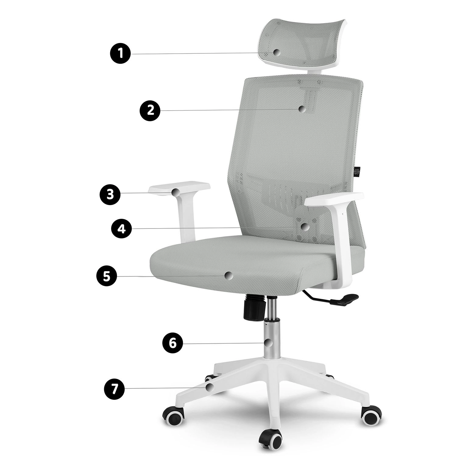 Enostavno ga prilagodite: nastavljiv vzglavnik, gugalni mehanizem z možnostjo aretacije v navpičnem položaju in praktični naslonjala za roke pomagajo razbremeniti vrat, hrbet in ramena pri dolgotrajnem sedenju. Čiste linije in sodoben dizajn diskretno dopolnijo vsak interier.