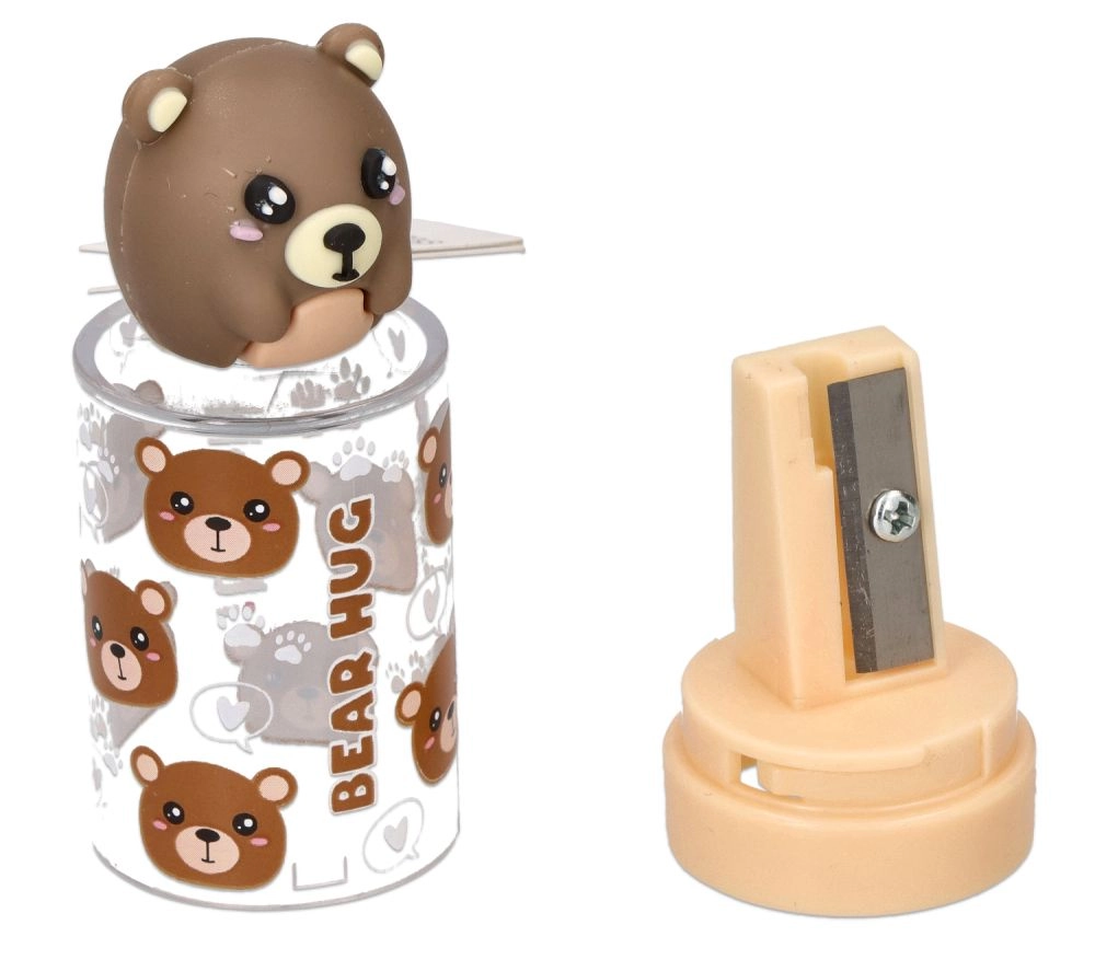 Spremenite šiljenje svinčnikov v zabavo. Ta šilček s prosojno posodico ujame vse ostružke, zato bosta vaša peresnica in delovna miza ostali čisti. Ljubka motiva medvedka in pande bosta navdušila otroke in ljubitelje igrivega dizajna.