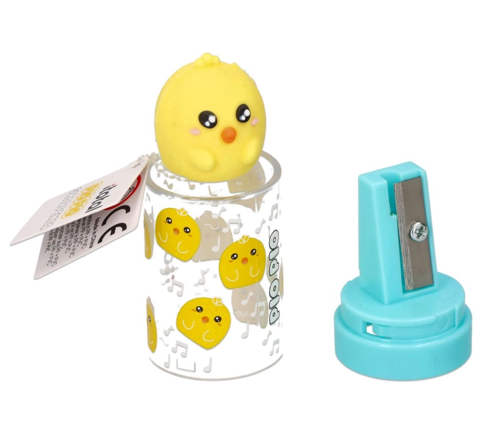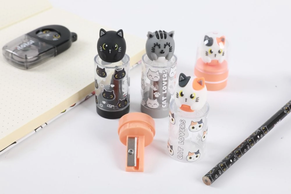 Lahka in trpežna konstrukcija se zlahka prilega vsaki peresnici. Kovinsko rezilo zagotavlja gladko, natančno šiljenje brez lomljenja mine, pokrovček s figurico pa služi kot praktična zaščita.