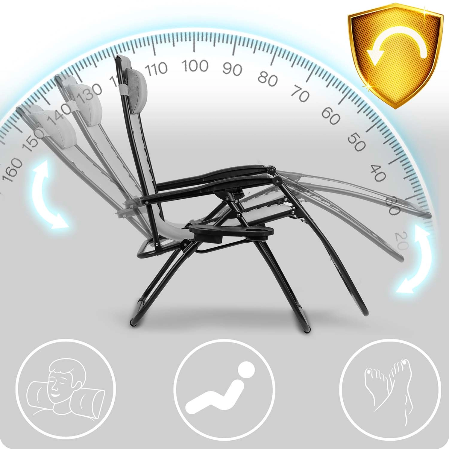 - Zložljiv vrtni ležalnik (zero‑gravity)