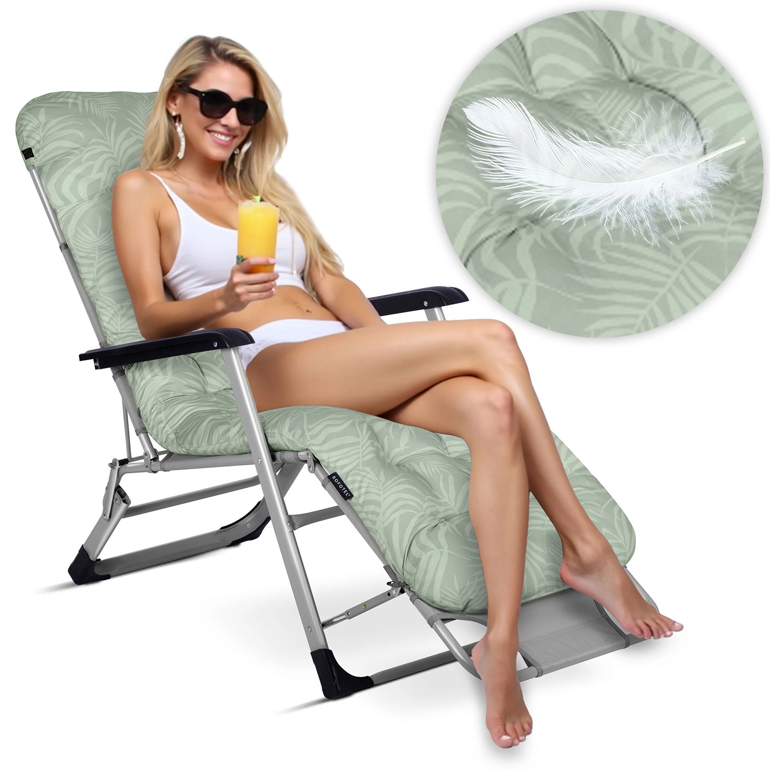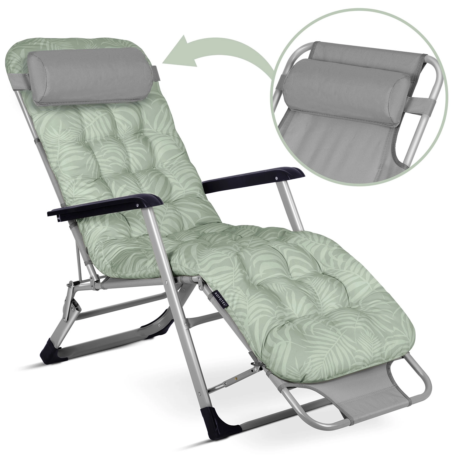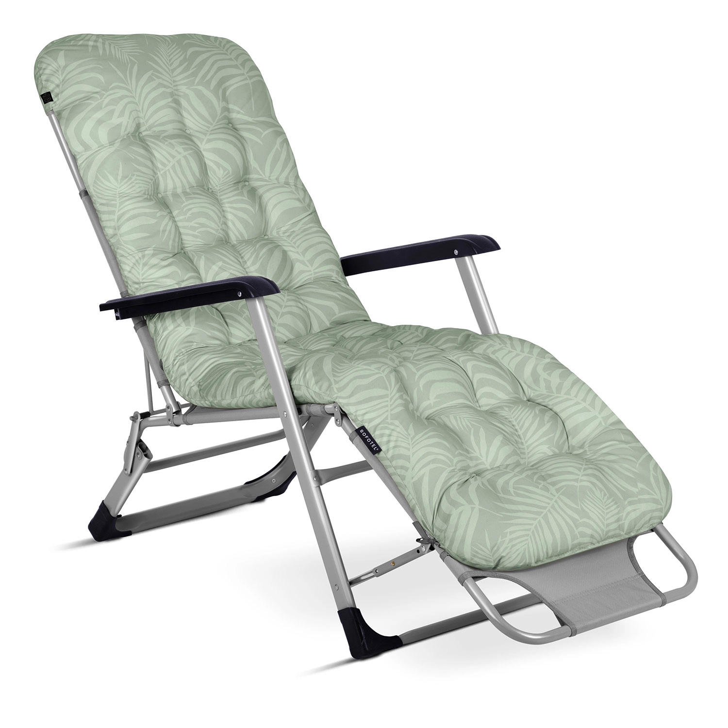 Uživajte v maksimalnem udobju kjerkoli na prostem z zložljivim ležalnikom Sofotel ChillWell. Močno oblazinjena blazina z nežnim poletnim vzorcem, nastavljiv naklon naslonjala vse do ležečega položaja, odstranljiv vzglavnik za oporo vratu in glave ter čvrsta, stabilna konstrukcija iz odpornih materialov. Ležalnik je zložljiv in enostaven za prenašanje, odporen na UV-sevanje in preprost za vzdrževanje – idealen za vrt, teraso in ob bazenu.