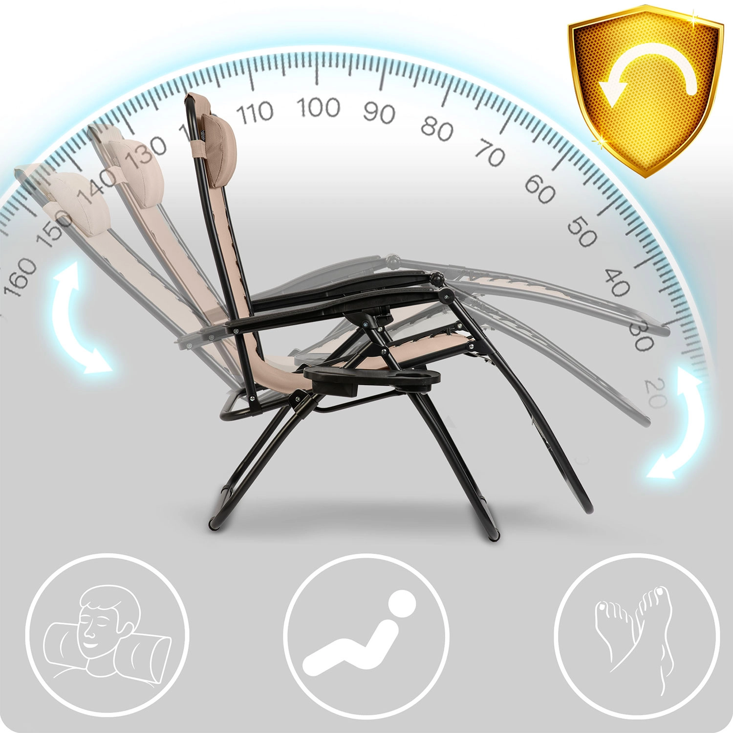 Ulezite se v breztezno lego, dvignite noge v višino srca in razbremenite hrbet ter krvni obtok. Preprost mehanizem omogoča nastavitev več položajev za maksimalno sprostitev.