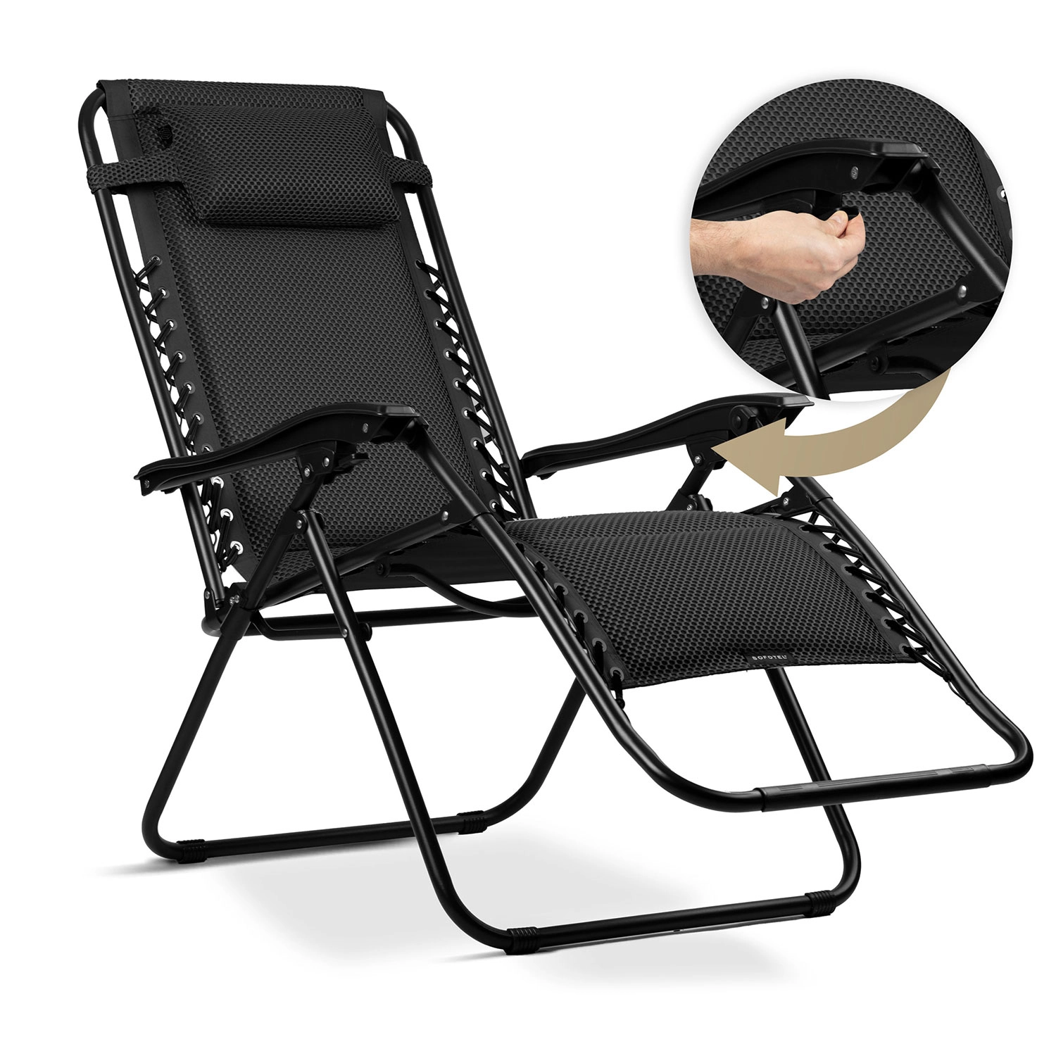 Uživajte v popolnem počitku z zložljivim gravitacijskim ležalnikom Sofotel ChillWell Soft v elegantni črni barvi. Ergonomična zasnova omogoča tekoče nastavljanje naklona naslonjala vse do skoraj breztežnega položaja za vrhunsko sprostitev. Mehka podglavnica podpira glavo in vrat, medtem ko inovativni 3D FoamGrid™ zagotavlja izjemno mehkobo, zračnost in hitro sušenje. Trden jeklen okvir s prašnim premazom zagotavlja stabilnost in dolgo življenjsko dobo doma na terasi, balkonu in na poti.