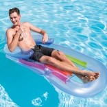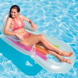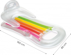 Napihljiva blazina INTEX združuje slog, udobje in vzdržljivost. Prosojna izvedba z barvnimi segmenti poživi vsak bazen, ergonomsko oblikovan mehak naslon za hrbet pa poskrbi za brezkompromisno sprostitev. Praktično držalo za pijačo hrani osvežitev vedno pri roki.