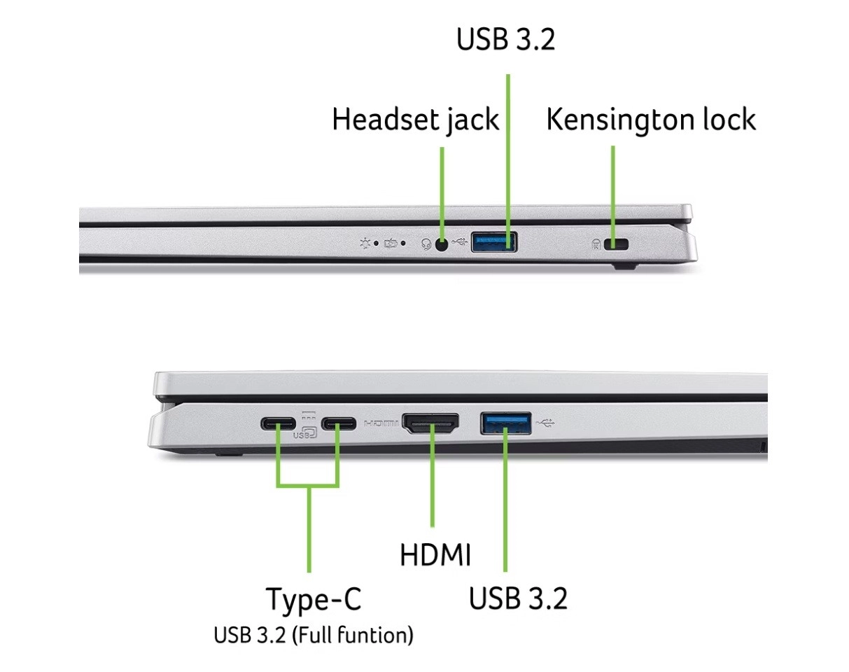 Za brezskrbno povezovanje sta na voljo dva polnofunkcijska priključka USB‑C, HDMI 2.1 za zunanje monitorje in hitra brezžična mreža Wi‑Fi 6. Orodje AcerSense vam omogoča preprosto upravljanje zmogljivosti, shrambe in stanja naprave z enim klikom, medtem ko Acer PurifiedVoice in TNR izboljšujeta kakovost spletnih klicev in videa. Prenosnik je dobavljen brez OS, zato lahko namestite želeni operacijski sistem.