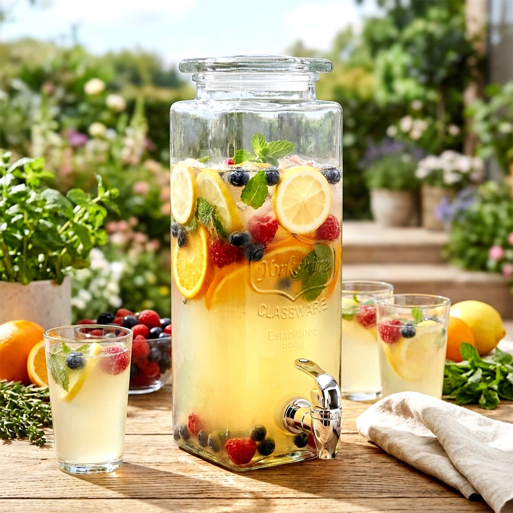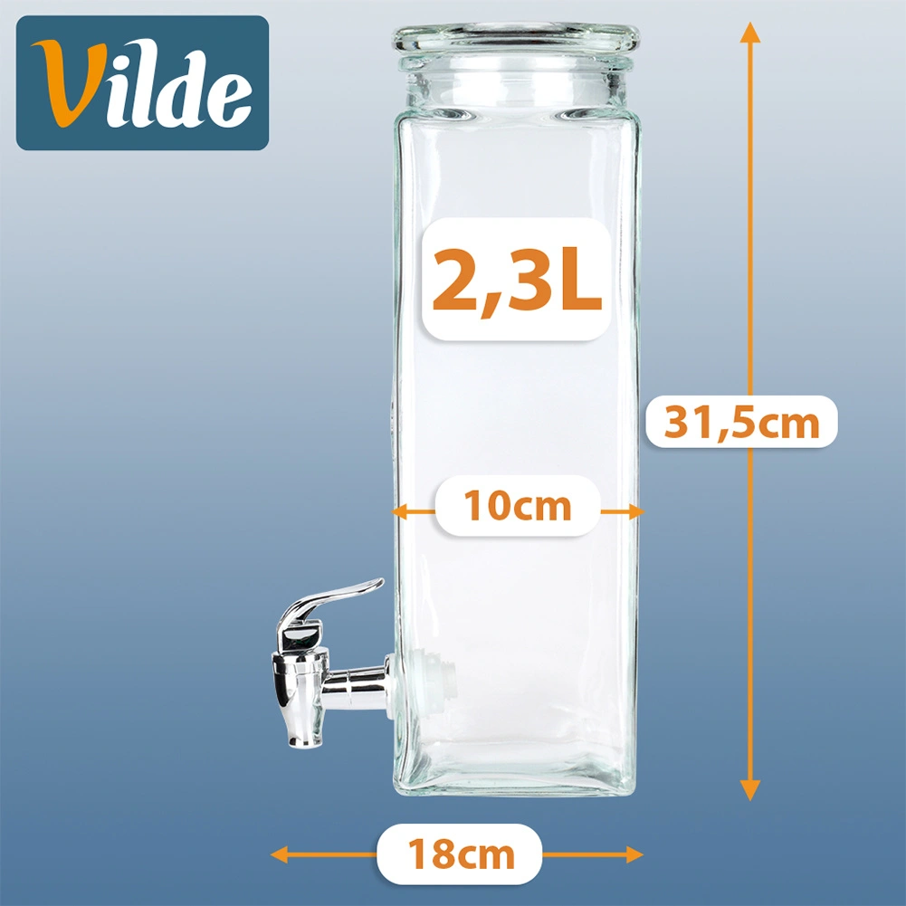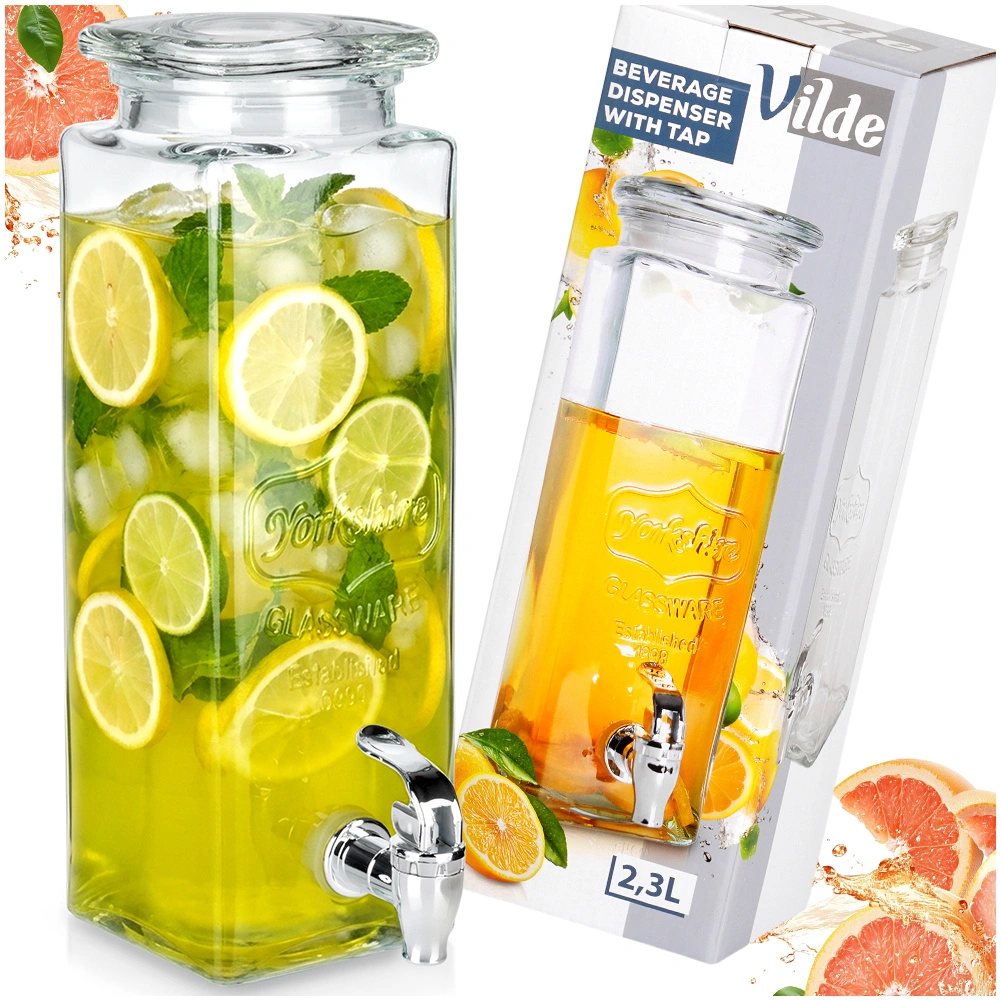 Zaradi kvadrataste, visoke oblike in širokega grla se dozirnik zlahka polni in čisti. Uporabite ga lahko na družinskih praznovanjih, vrtnih žarih ter v kavarni ali bistru za privlačno predstavitev ledenega čaja ali aromatizirane vode. Ni primeren za vroče pijače.