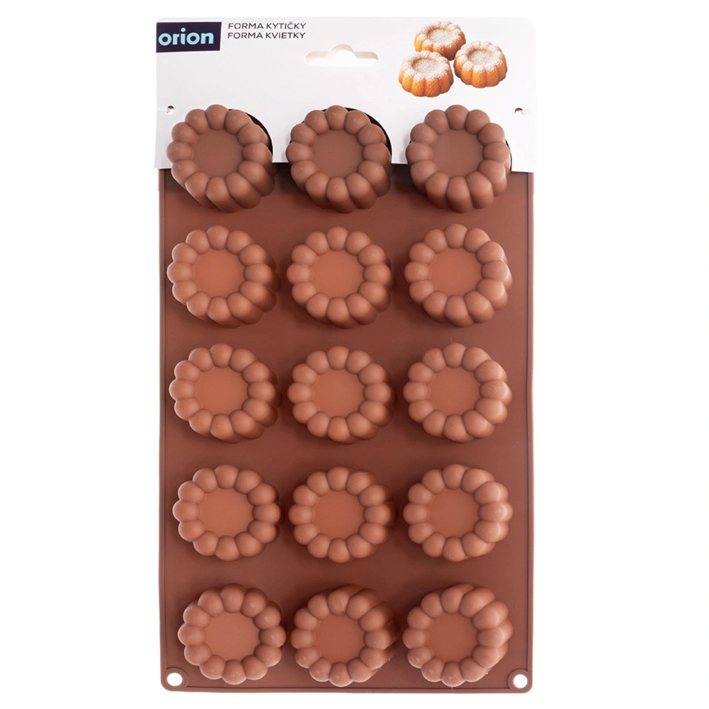 Ta rjav silikonski model je idealen za hitro in kreativno pripravo domačih slaščic. Zahvaljujoč 15 modelčkom v obliki cveta dosežete enotne in dekorativne rezultate pri peki mini bábovk, piškotov ter pri izdelavi čokoladic in pralin. Silikonski material je prilagodljiv in nelepljiv, zato končne dobrote preprosto odstranite brez lomljenja in brez potrebnega mazanja z maščobo ali posipanja z moko.