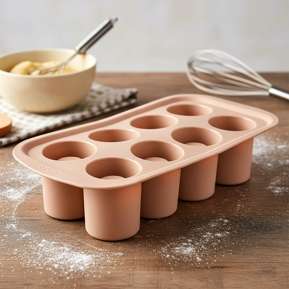 Praktičen silikonski pekač za peko in zamrzovanje za pripravo učinkovitih sladic, mini tortic in piškotov z votlim sredinskim delom za kreme, pene ali likerje. Ponuja 8 vdolbin s premerom 4,5 cm in višino 6 cm, je fleksibilen, neprijemljiv in odporen od −40 °C do +200 °C. Primeren za pečico, mikrovalovko, hladilnik in zamrzovalnik ter ga je mogoče pomivati v pomivalnem stroju.