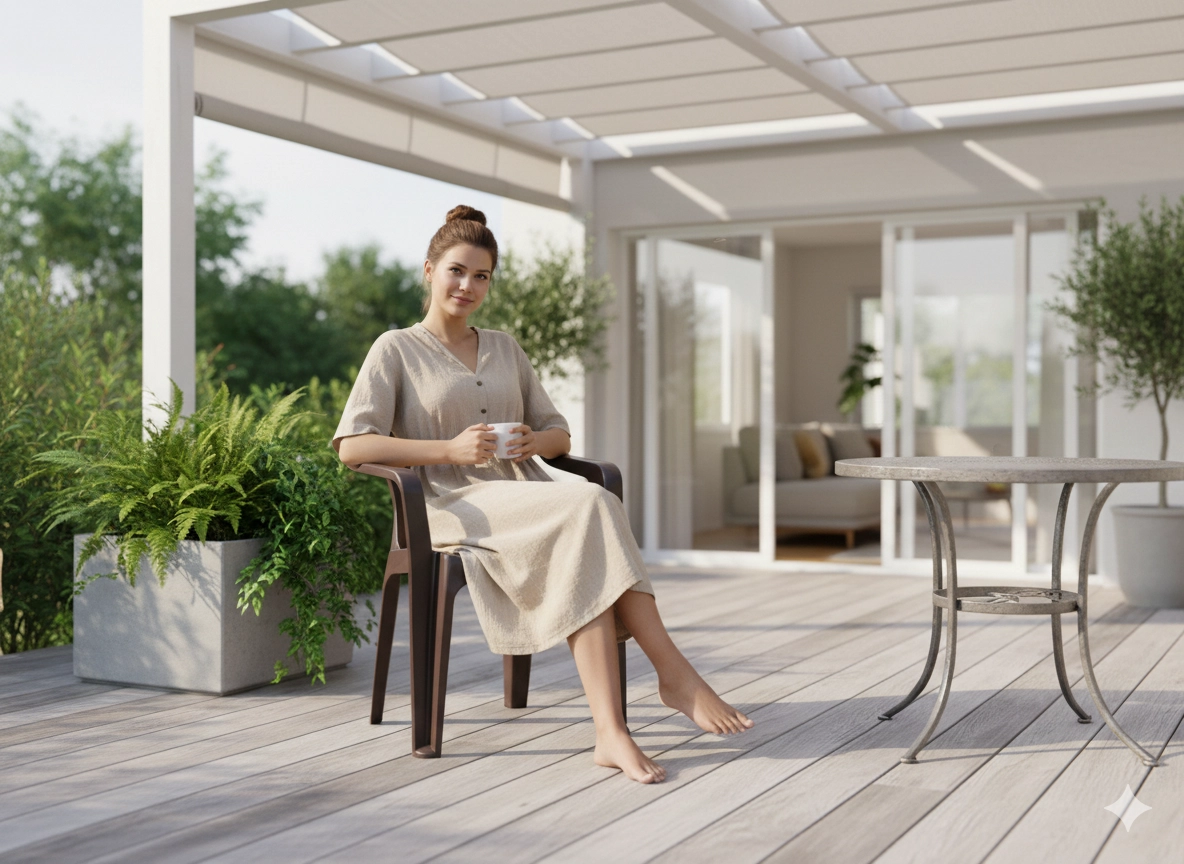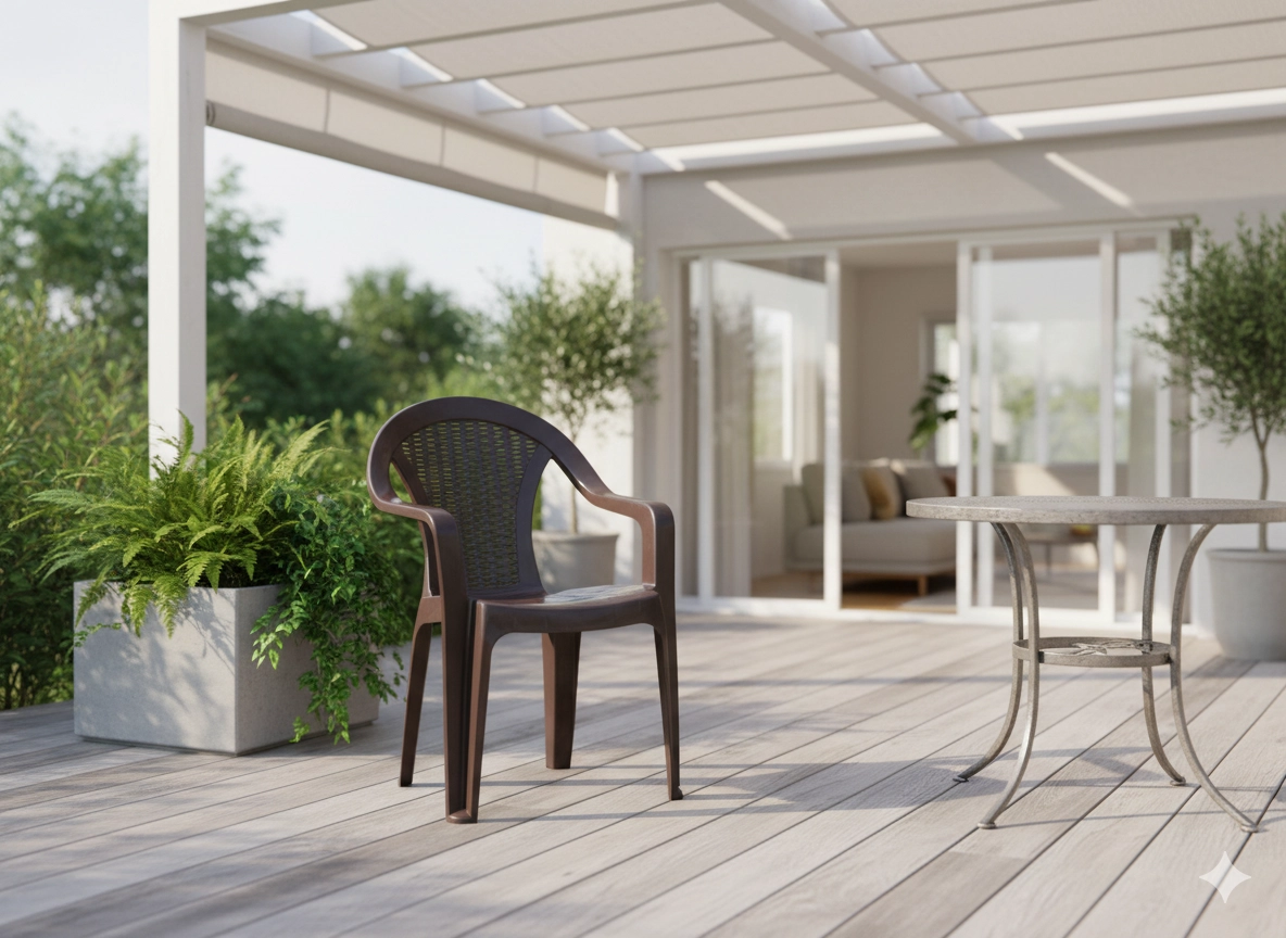 Trpežna plastika prenese dež in sonce, za čiščenje pa zadostuje vlažna krpa. Idealna izbira za teraso, balkon ali vrtni kotiček.