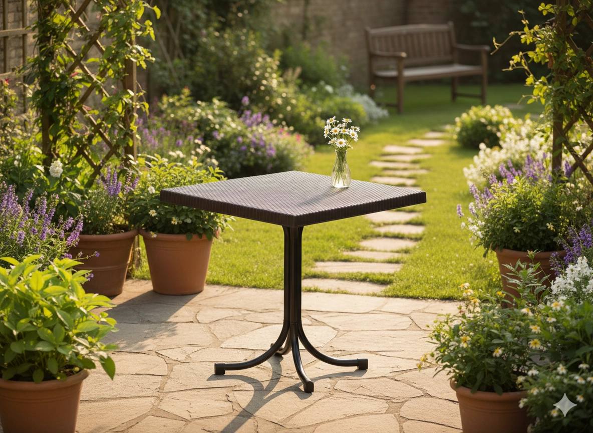 Kompakten kvadratni format 80 × 80 cm je primeren za balkone, terase in vrtne kotičke, ne da bi zavzel preveč prostora.