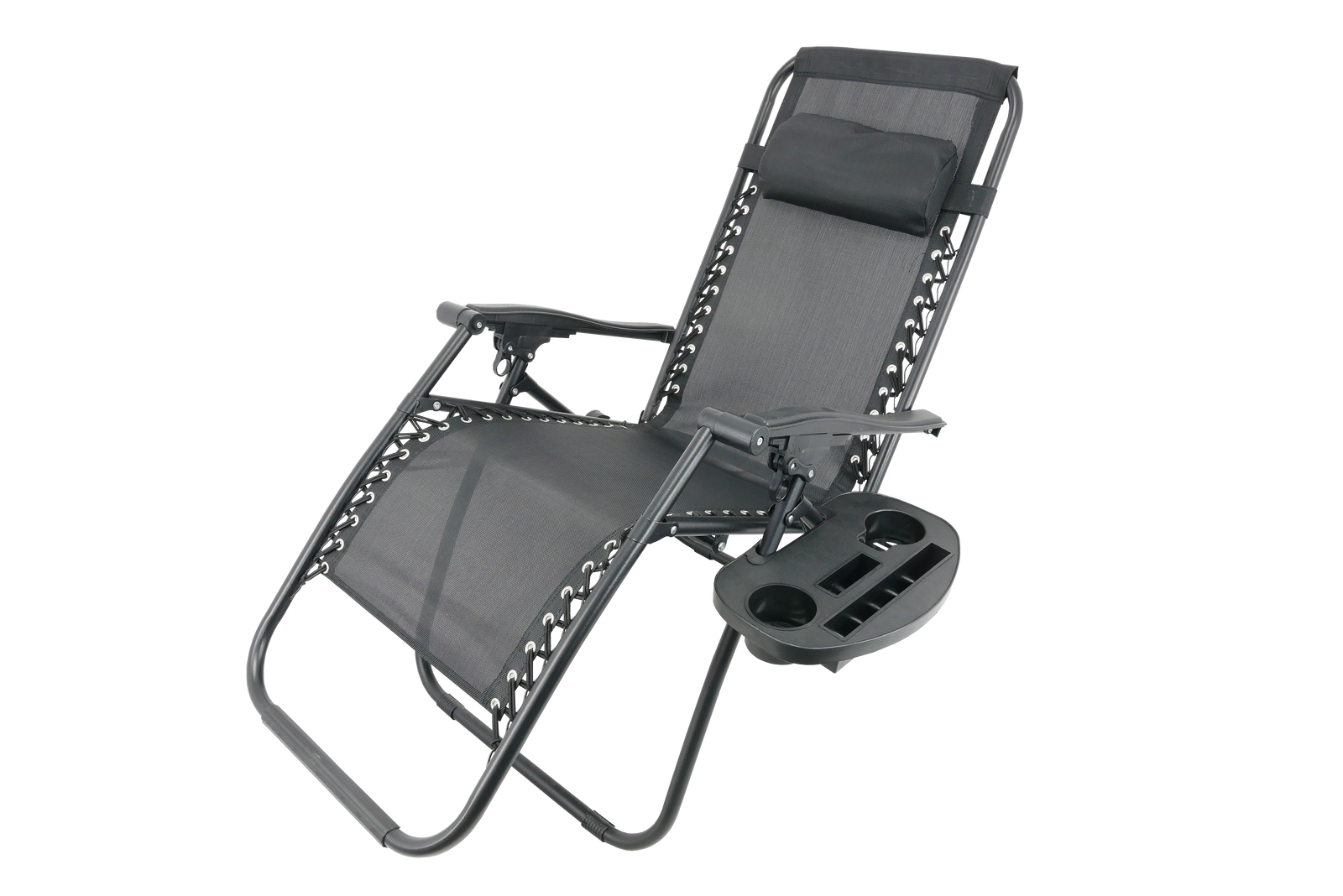 Črn zložljiv vrtni ležalnik je zasnovan za maksimalno sprostitev. Robustni jekleni okvir z vrvnim vpetjem in zračna mrežasta tkanina prijetno prožita, medtem ko odstranljiva stranska mizica z držalom za pijačo in predalčki poskrbi, da imate vse pri roki. Zahvaljujoč nastavljivemu naslonjalu in podnožnemu delu zlahka preklopite iz sedenja v ležeč položaj.