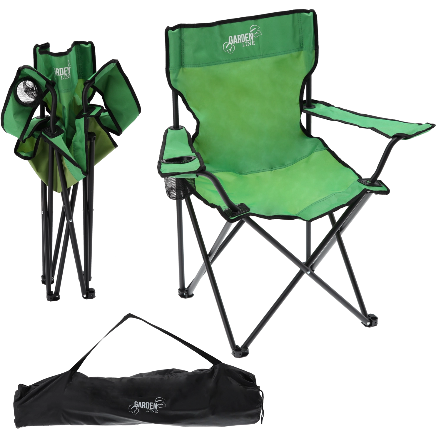 Praktičen zložljiv kamp stol v zeleni barvi za udobno sedenje ob vodi in na izletih. Ponuja čvrsto jekleno konstrukcijo, odporno tkanino 600D Oxford in vgrajen držalo za pijačo. Priložen je transportni vreča za enostavno nošenje.
