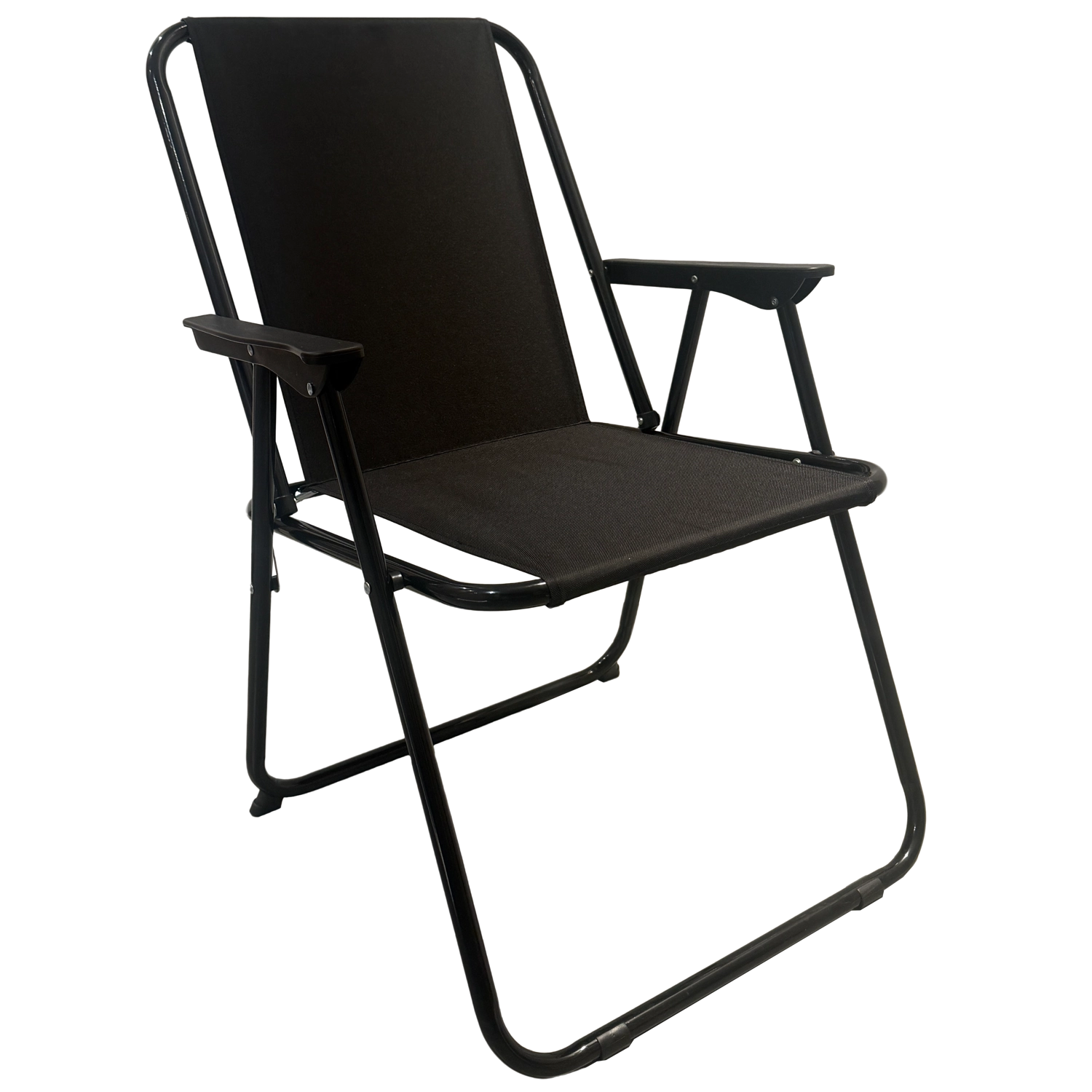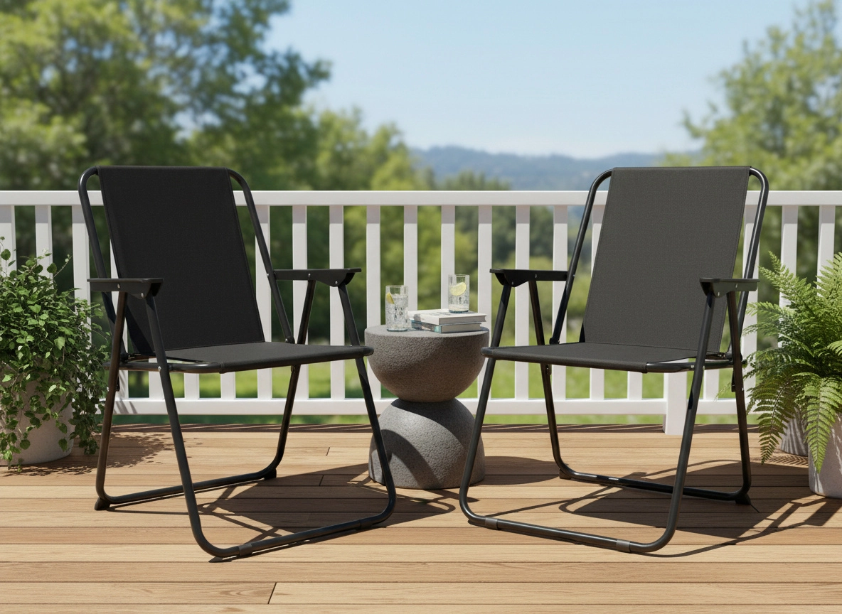 Uživajte v udobju kjerkoli in kadarkoli. Ta črn zložljiv stol združuje minimalističen dizajn s funkcionalnostjo – razprete ga v hipu in po uporabi preprosto shranite. Lahka, a čvrsta konstrukcija je idealna za vsakodnevno uporabo na vrtu, terasi ali pri kampiranju.