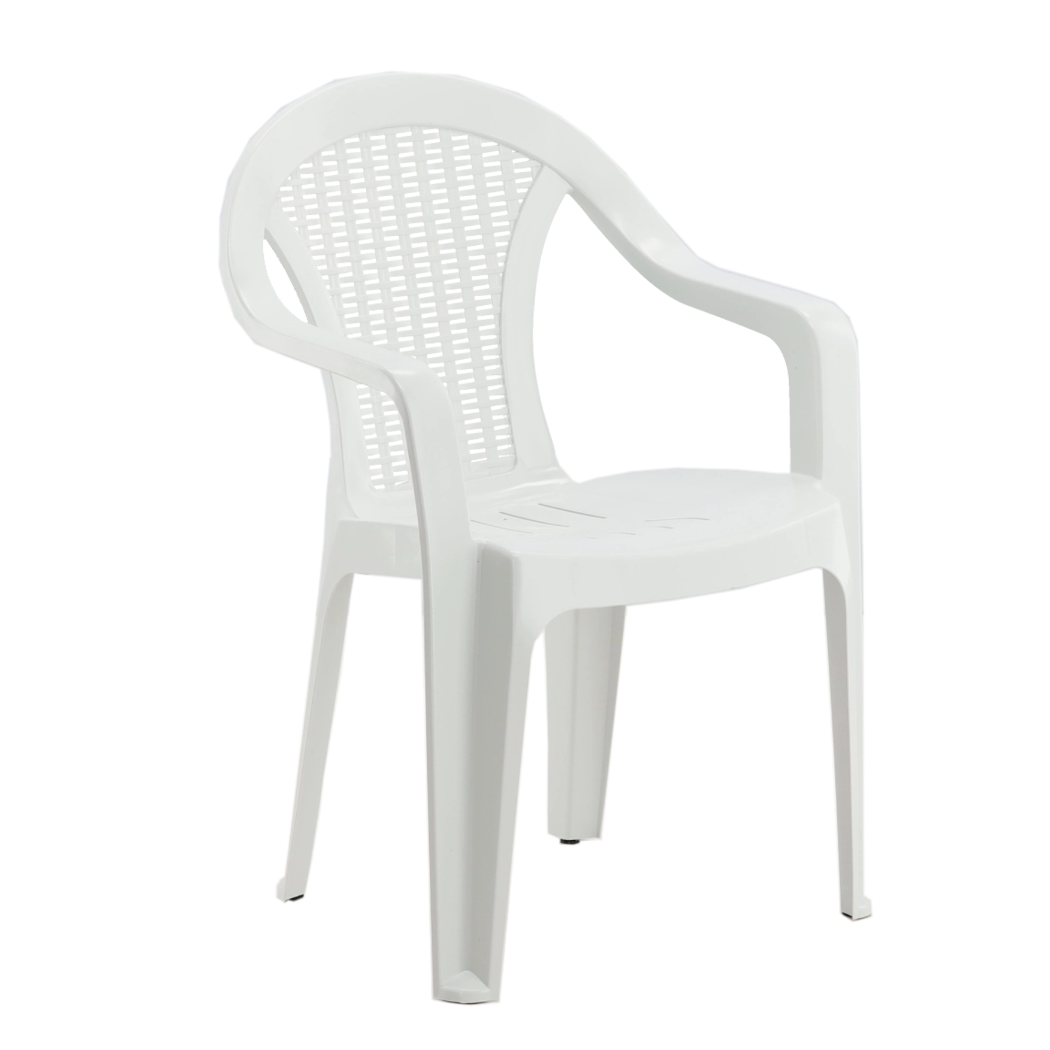 Stilski bel vrtni stol je zasnovan za vsakodnevno zunanjo uporabo. Odporno plastično ohišje se dobro spopade z dežjem in soncem, medtem ko ergonomska oblika in naslonjali za roke zagotavljata prijetno sedenje ob kavi ali daljšem druženju s prijatelji.