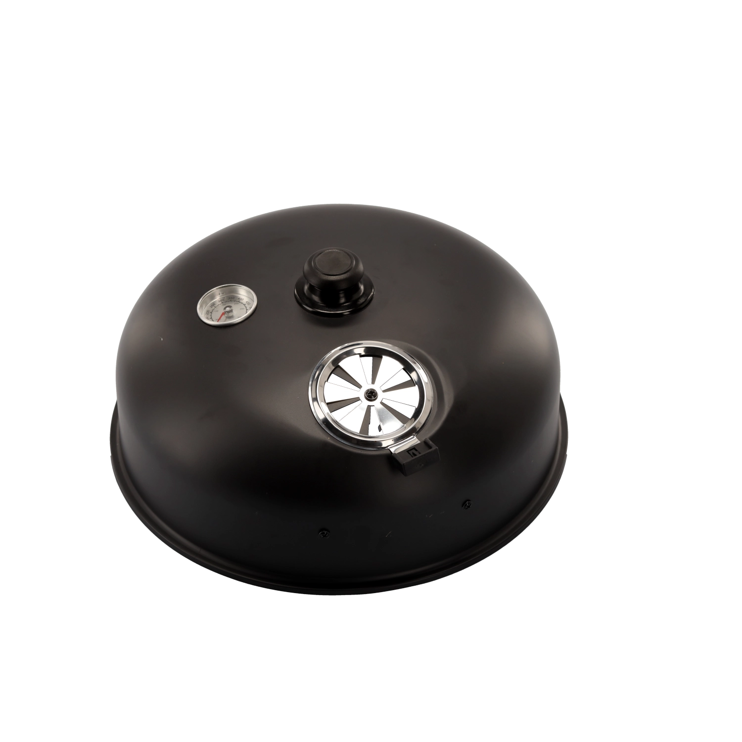 Vgrajeni termometer v pokrovu in nastavljive zračne odprtine zagotavljajo stabilno temperaturo za sočne rezultate in popolno dimno aromo.