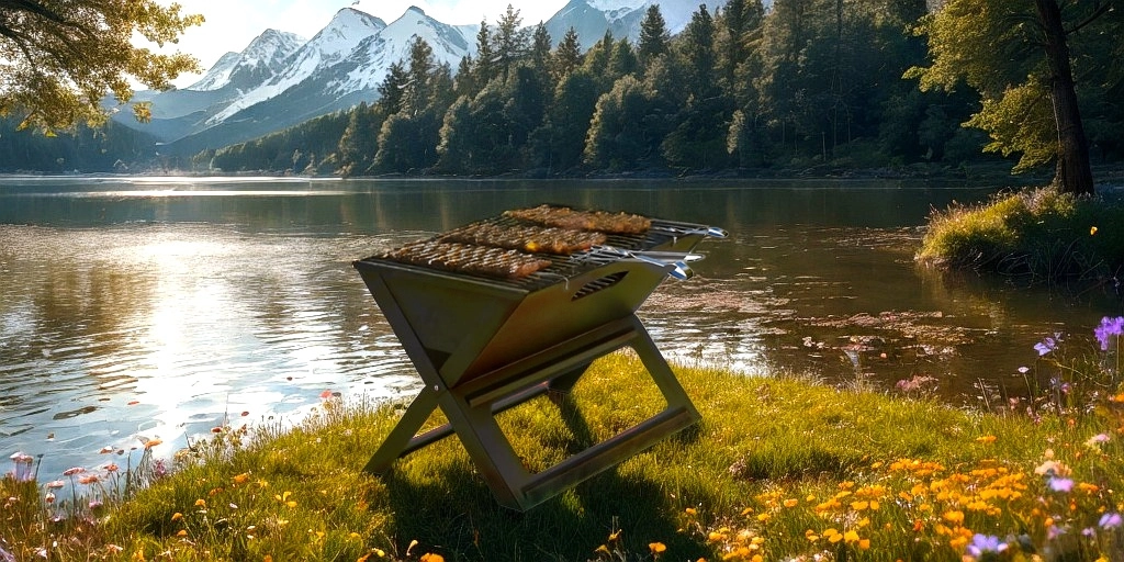 Praktičen potovalni žar z merami 44 × 28,5 × 36 cm ponuja idealno površino za pripravo mesa, zelenjave in hitrih prigrizkov. Zložljiv okvir X/A zagotavlja stabilnost med peko, po koncu pa ga preprosto zložite na ravno za udobno prenašanje in shranjevanje.
