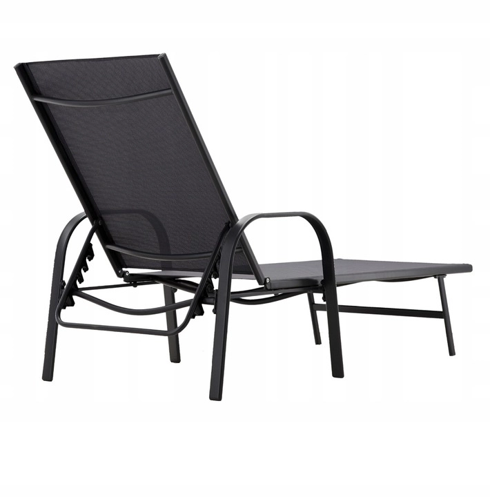 Ta zunanji ležalnik je odlična izbira za sončenje in miren počitek. Kombinacija čvrste jeklene konstrukcije in zračne tekstilne oblazinitve zagotavlja udobje tudi pri daljši uporabi, medtem ko nevtralna temno siva barva zlahka dopolni moderne zunanje prostore.
