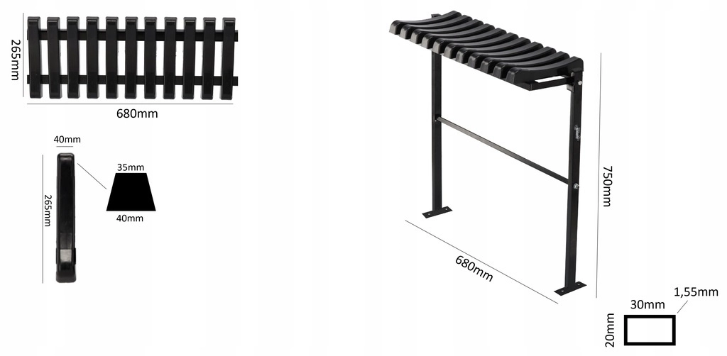 - Odporni materiali – jekleni profili in rebrast sedež za trdnost in udobje.