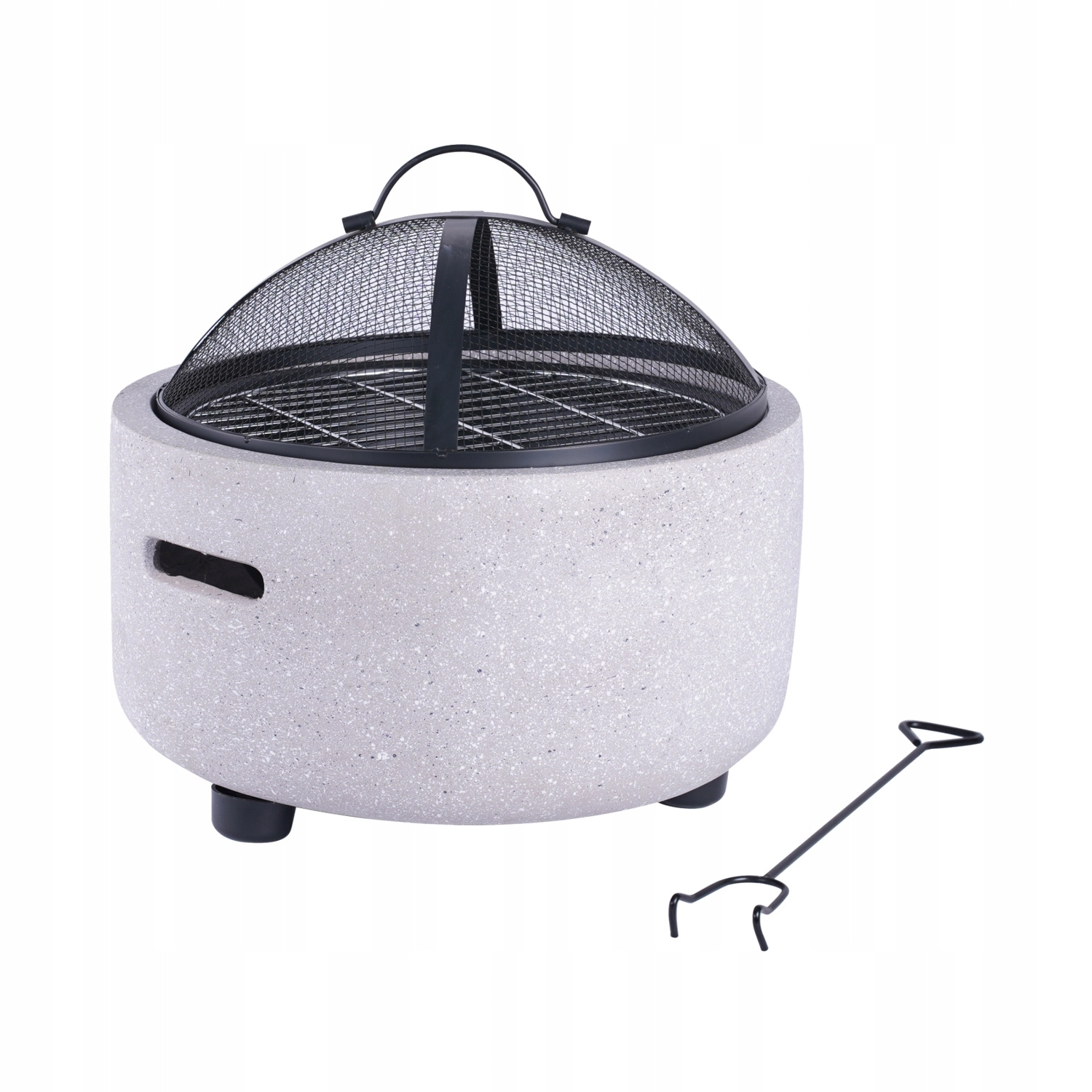Iskrolovna kupola in grabljice zmanjšujeta tveganje odletavanja isker in povečujeta udobje. Stabilne nogice in stranski ročaji olajšajo prenašanje.
