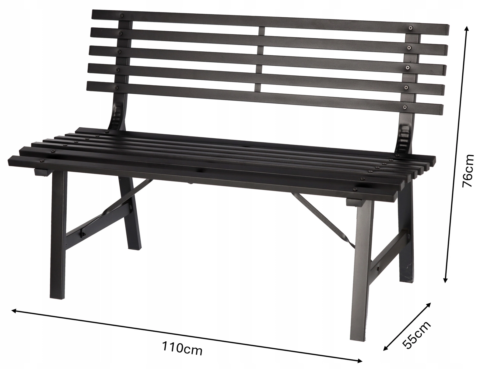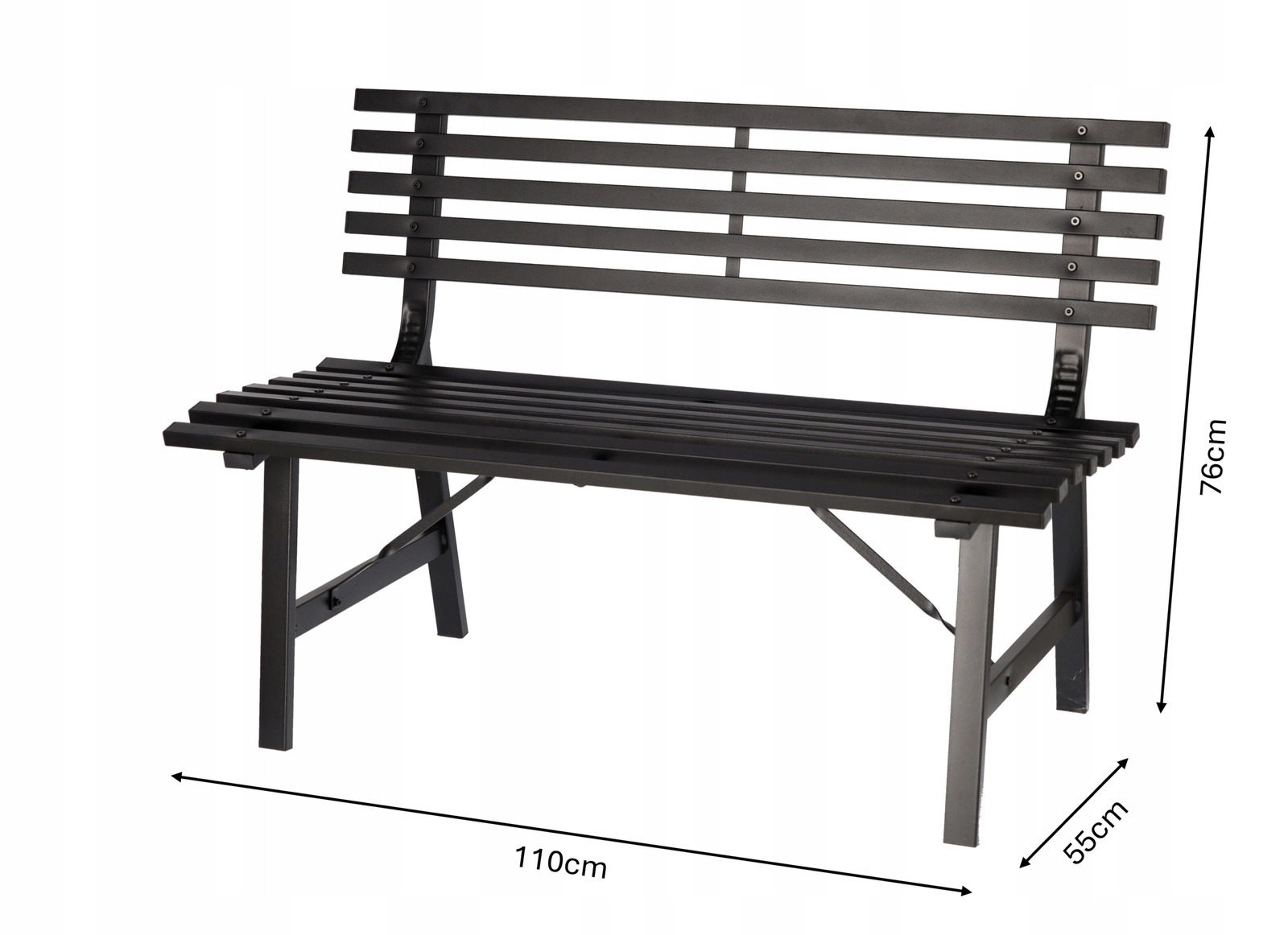 Ta kovinska vrtna klop združuje čist dizajn in funkcionalnost. Jeklena konstrukcija z vijačenimi spoji zagotavlja trdnost in stabilnost, medtem ko lamelni sedež in naslonjalo omogočata hiter odtok vode in preprosto vzdrževanje. Črna površina se zlahka ujema s katerim koli slogom vrta ali terase.