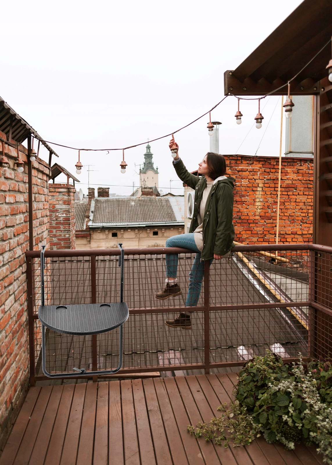 Po uporabi mizo preprosto preklopite k ograji. Idealno za majhne balkone, kjer šteje vsak centimeter.