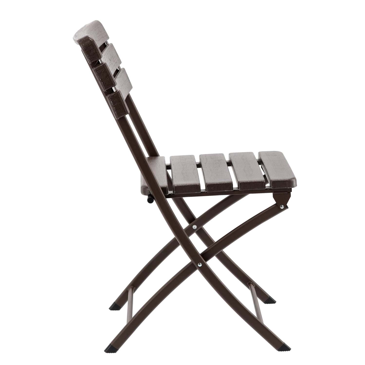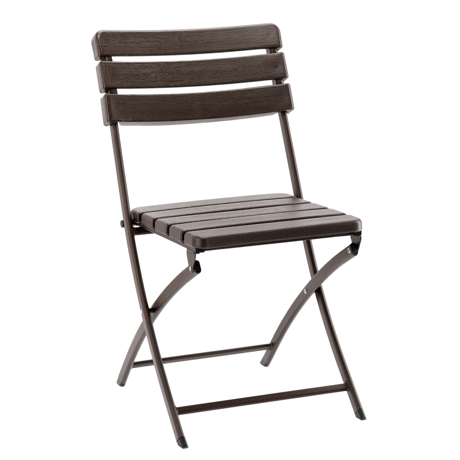 Ta kompaktni in vzdržljivi stol je idealen za vsakodnevno zunanjo uporabo. Rjav zaključek z lesenim učinkom deluje naravno in elegantno, medtem ko čvrsta jeklena konstrukcija zagotavlja stabilnost in dolgo življenjsko dobo. Po zložitvi zavzame minimalno prostora, zato je odličen za manjše prostore in na poti.