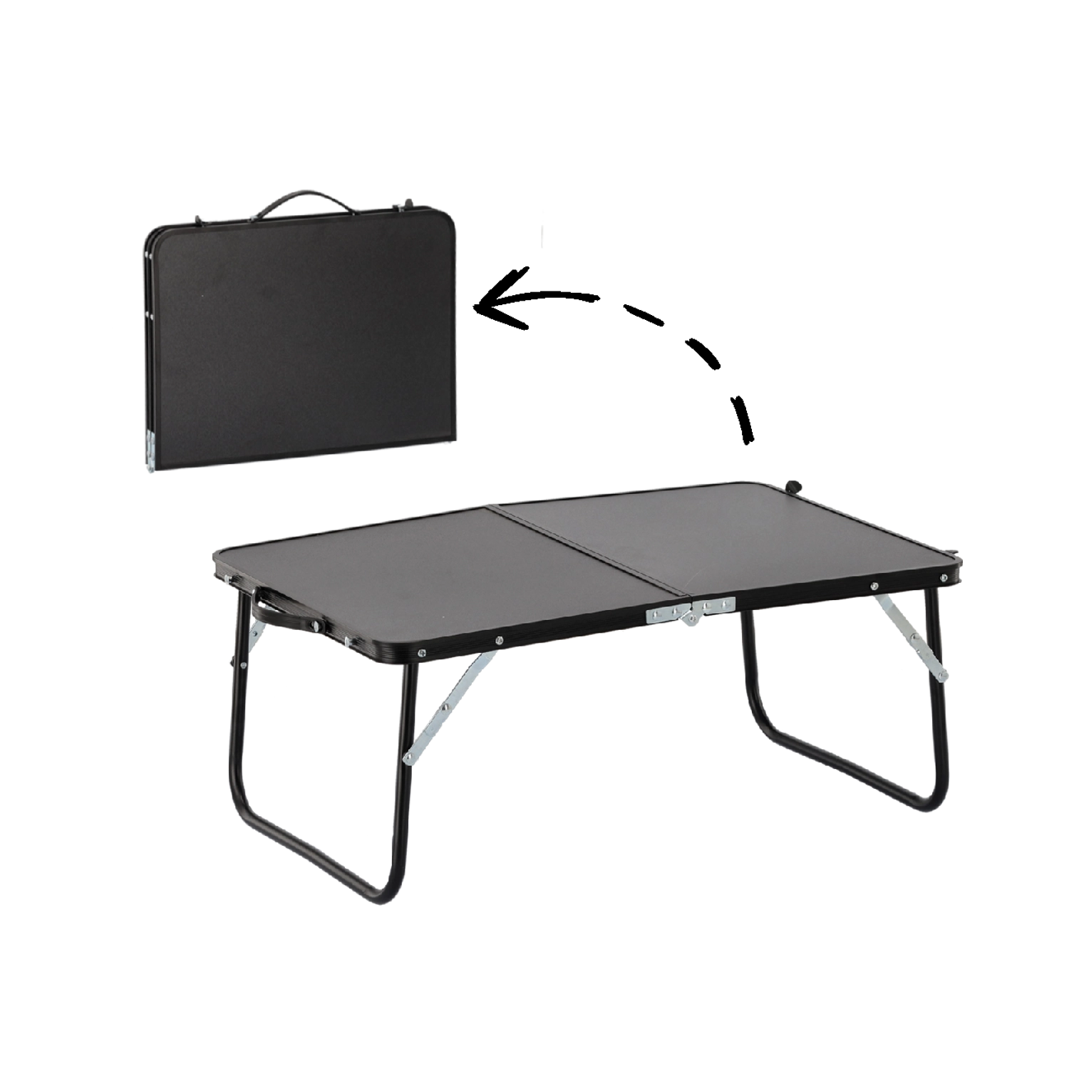Uživajte v udobju kjer koli na prostem s praktično zložljivo mizico v elegantni črni barvi. Postavite jo v nekaj sekundah in dobite stabilno površino za kavo, knjigo, zemljevid ali prigrizke. Po uporabi se zloži v ploščat »kovček«, zato ne zavzame prostora v avtu ali nahrbtniku.