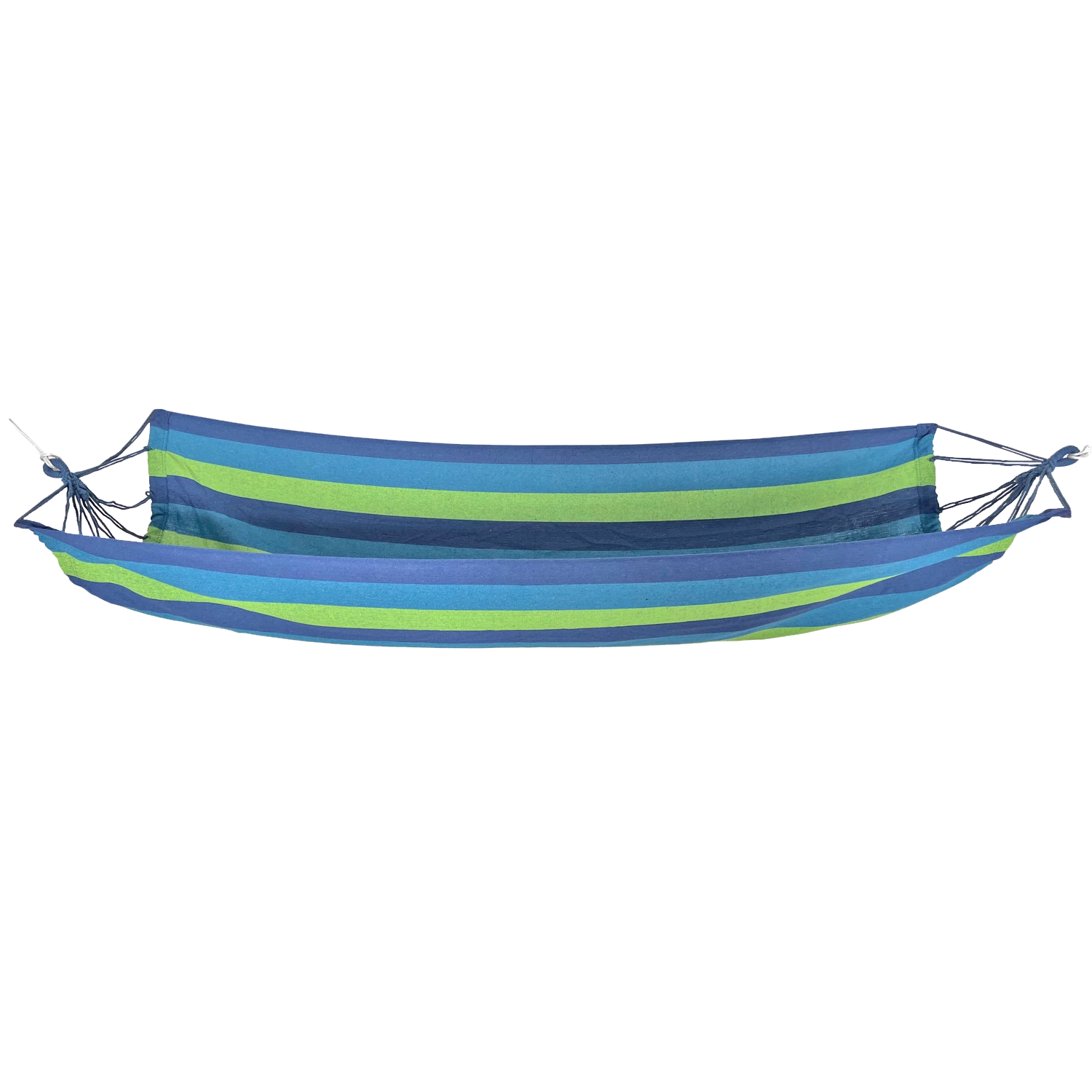 Prostorna in udobna viseča mreža je izdelana iz mešanice poliestera in bombaža, ki je prijetna na otip, dobro diha in hkrati ohranja obliko. Modre črte vsakemu prostoru dodajo počitniško vzdušje.