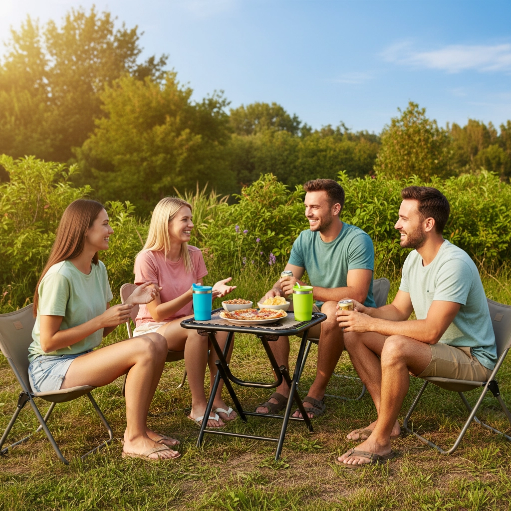 - Kompaktne dimenzije: idealna delovna ali servirna površina za aktivnosti na prostem.