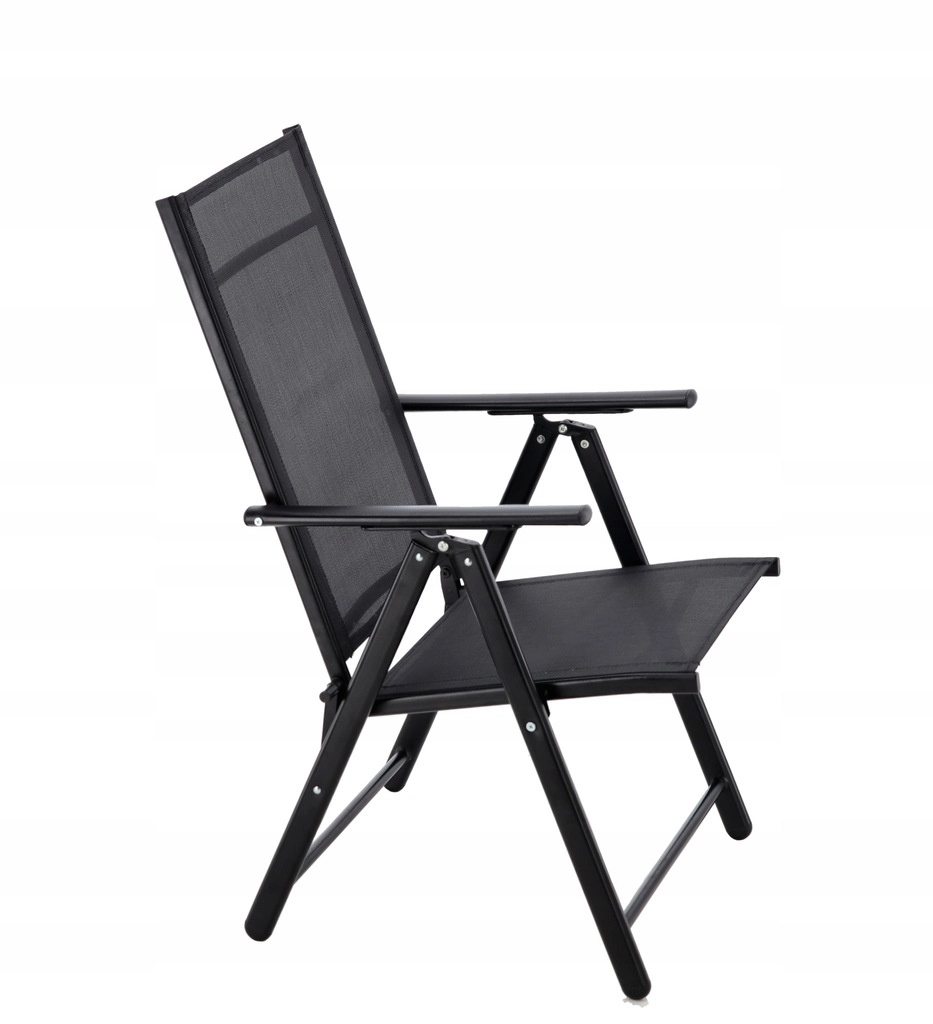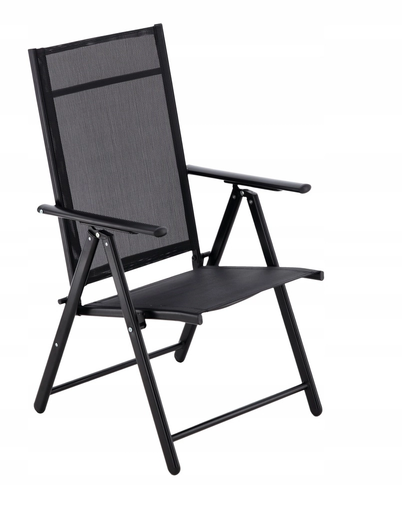 Ta črn zložljiv stol združuje sodoben videz s praktičnostjo za vsakodnevno uporabo na vrtu, terasi ali balkonu. Stabilna jeklena konstrukcija s prašnim lakiranjem je odporna na vremenske vplive, medtem ko je tekstilna mrežica prijetna, hitro sušeča in enostavna za nego.