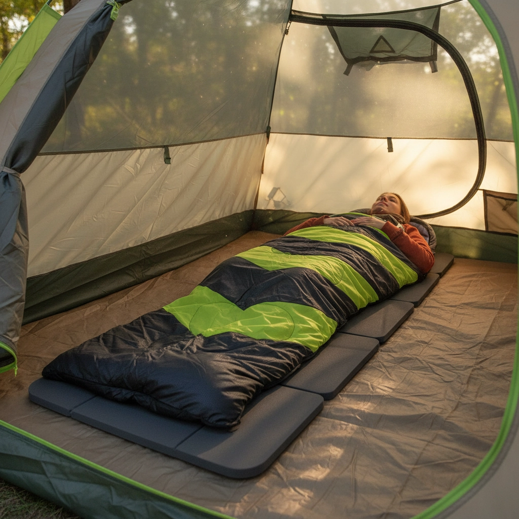 Lahka in udobna spalna vreča za kampiranje, festivale in vikend izlete. Ponuja vodoodporen material, udobno kapuco, notranji žep za drobnarije in praktičen kompresijski ovitek. Zaradi dimenzij 220 × 75 cm zagotavlja dovolj prostora in svobodo gibanja, medtem ko vzdržljiva zadrga in skrbna izdelava zagotavljata dolgo življenjsko dobo.