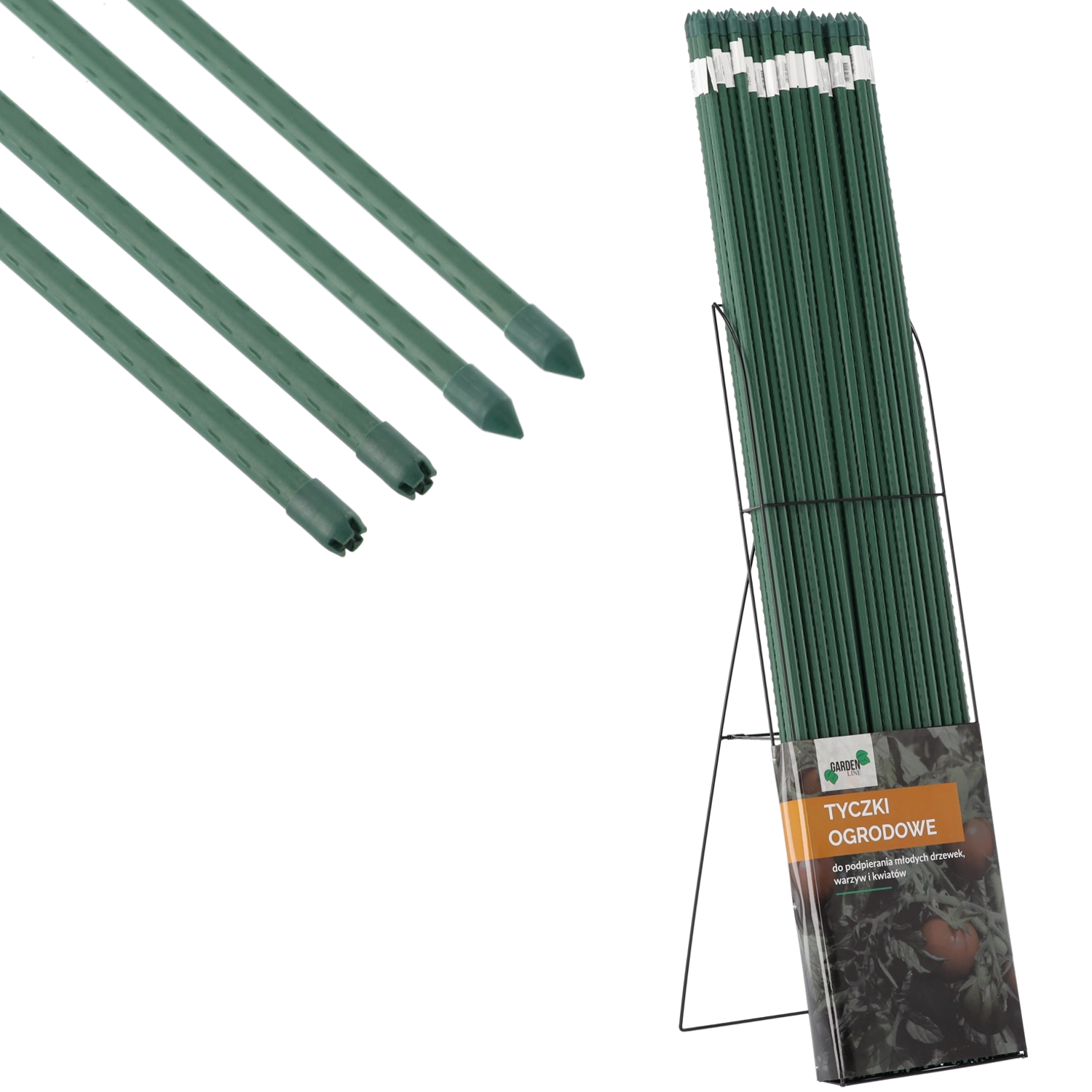 Praktična opora za vrt, rastlinjak in gredice pomaga varno voditi vzpenjavke, zelenjavo in mlada drevesca. Zaradi kovinskega jedra in polietilenske površine je palica čvrsta, trpežna in odporna proti koroziji. Zošen konica olajša zabadanje v zemljo, nežne izbokline pa preprečujejo drsenje vrvic za privezovanje rastlin.