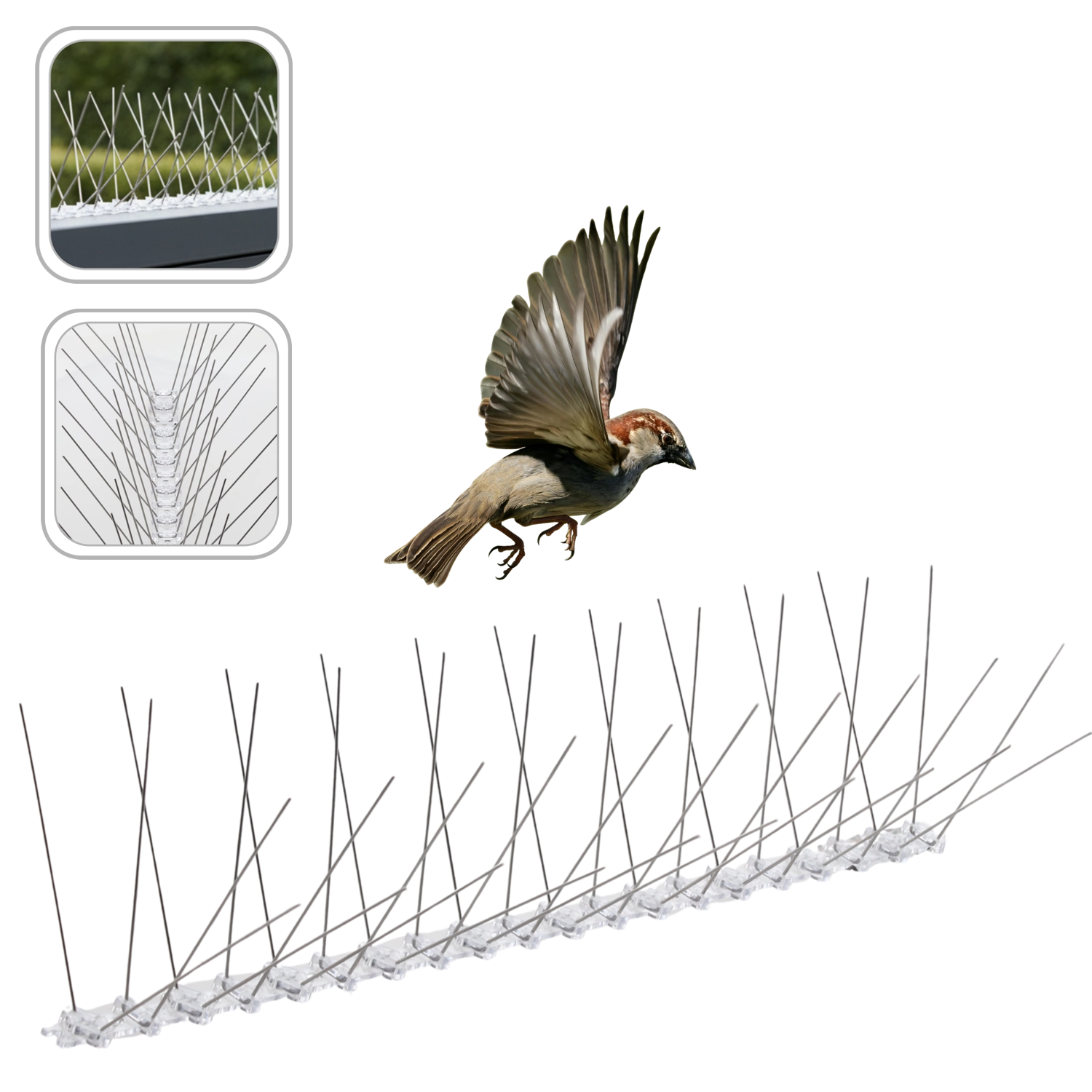 Zaščitite svojo nepremičnino pred umazanijo in poškodbami, ki jih povzročajo ptice, z učinkovitimi konici s prožno osnovo. Enostavna namestitev in univerzalna uporaba ju naredita idealno izbiro za robove streh, napušče, okenske police in ograje. Varno za ptice – preprečuje pristajanje, ne škoduje.