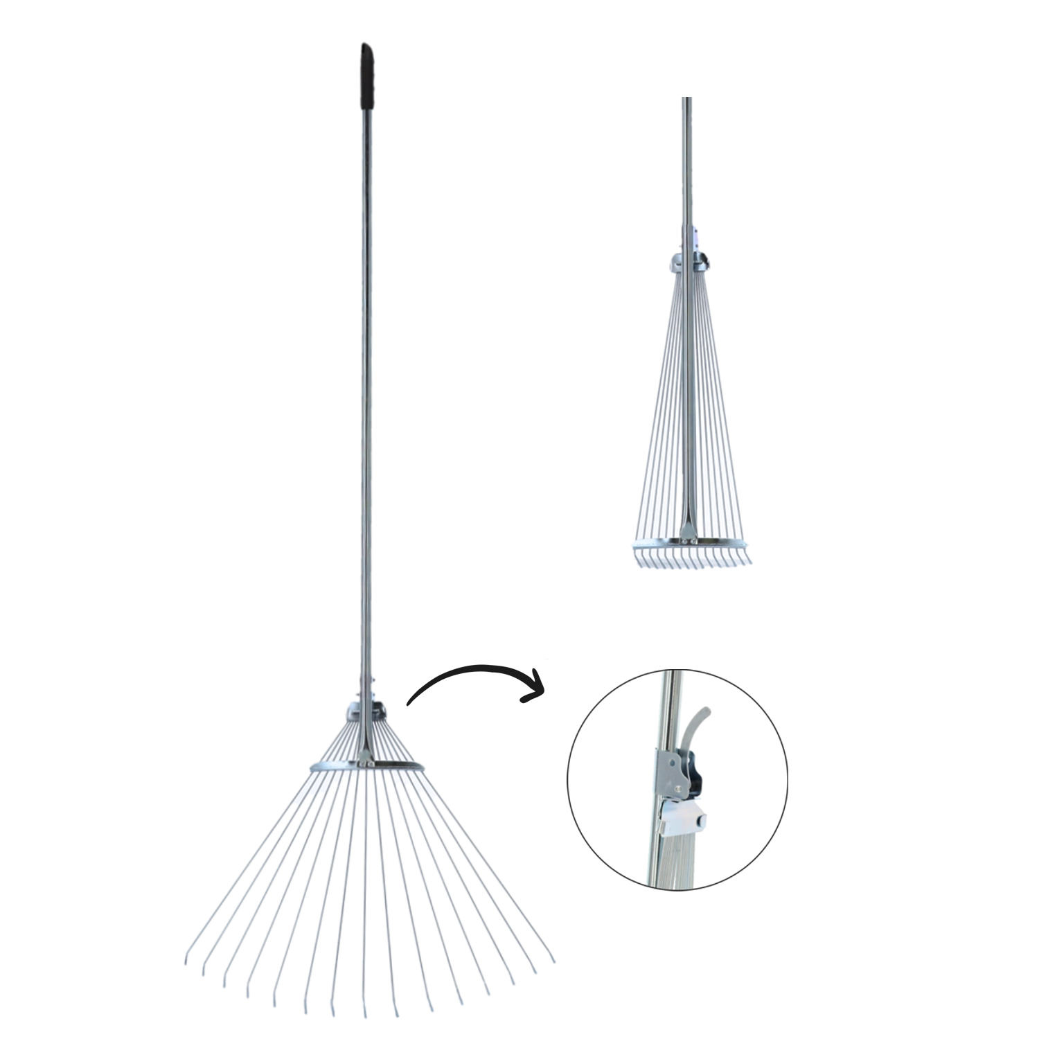 Enostavno zožite ali razširite pahljačo zob za natančno delo na gredicah ali hitro grabljenje po trati.