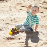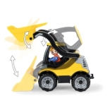 Sprednja žlica se zlahka dviga in nagiba, zato lahko otroci zajemajo in presipavajo pesek ali kocke kot pravi nakladač.