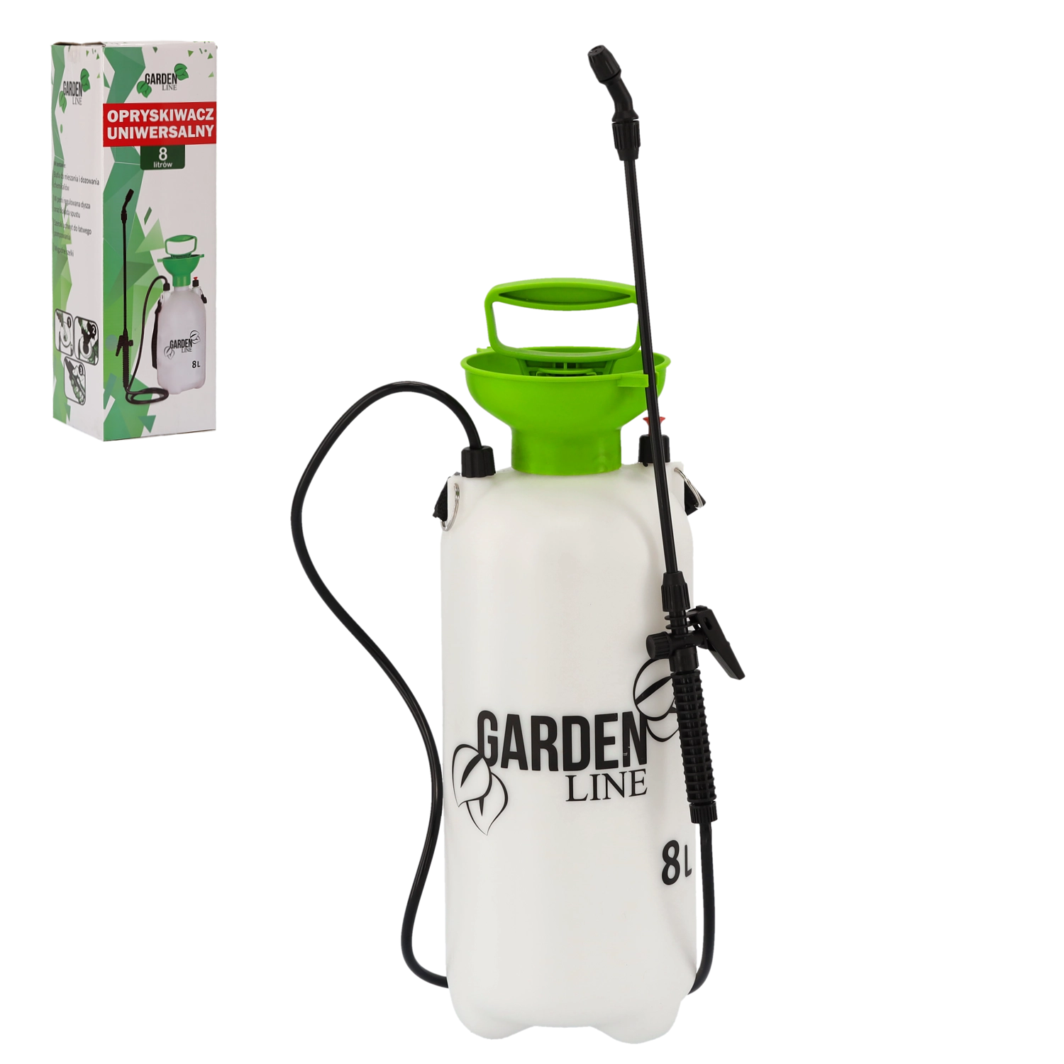 Univerzalni tlačni razpršilec s prostornino 8 l za preprosto in enakomerno razprševanje vode, gnojil in sredstev za zaščito rastlin. Zahvaljujoč nastavljivi šobi, zaporu sprožilca in udobnemu ramenskemu pašču je idealna izbira za vsak vrt. Odporna posoda iz polipropilena, varnostni ventil in merilna lestvica zagotavljajo varno in natančno uporabo.