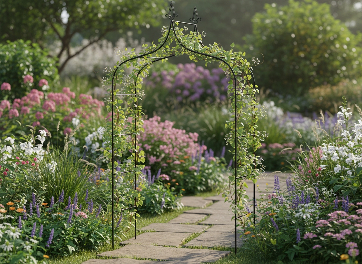 Praškasto lakirano jeklo v univerzalni črni barvi je odporno na vremenske vplive in se lepo ujema s klasičnimi in sodobnimi vrtovi. V paketu so priložena sidra za varno pritrditev, ki zagotavljajo stabilnost tudi ob vetru.