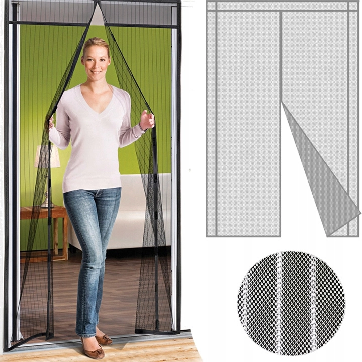 Magnetna mreža za vrata je idealna rešitev za stanovanja, družinske hiše, počitniške hišice in vrtne lope. Dva prekrivajoča se panela se po prehodu takoj združita zahvaljujoč magnetom, zato v prostor ne spustita ne muh ne komarjev, medtem ko lahko svež zrak prosto kroži. Lahka in trpežna mreža v beli barvi se zlahka ujema z večino vratnih okvirjev.
