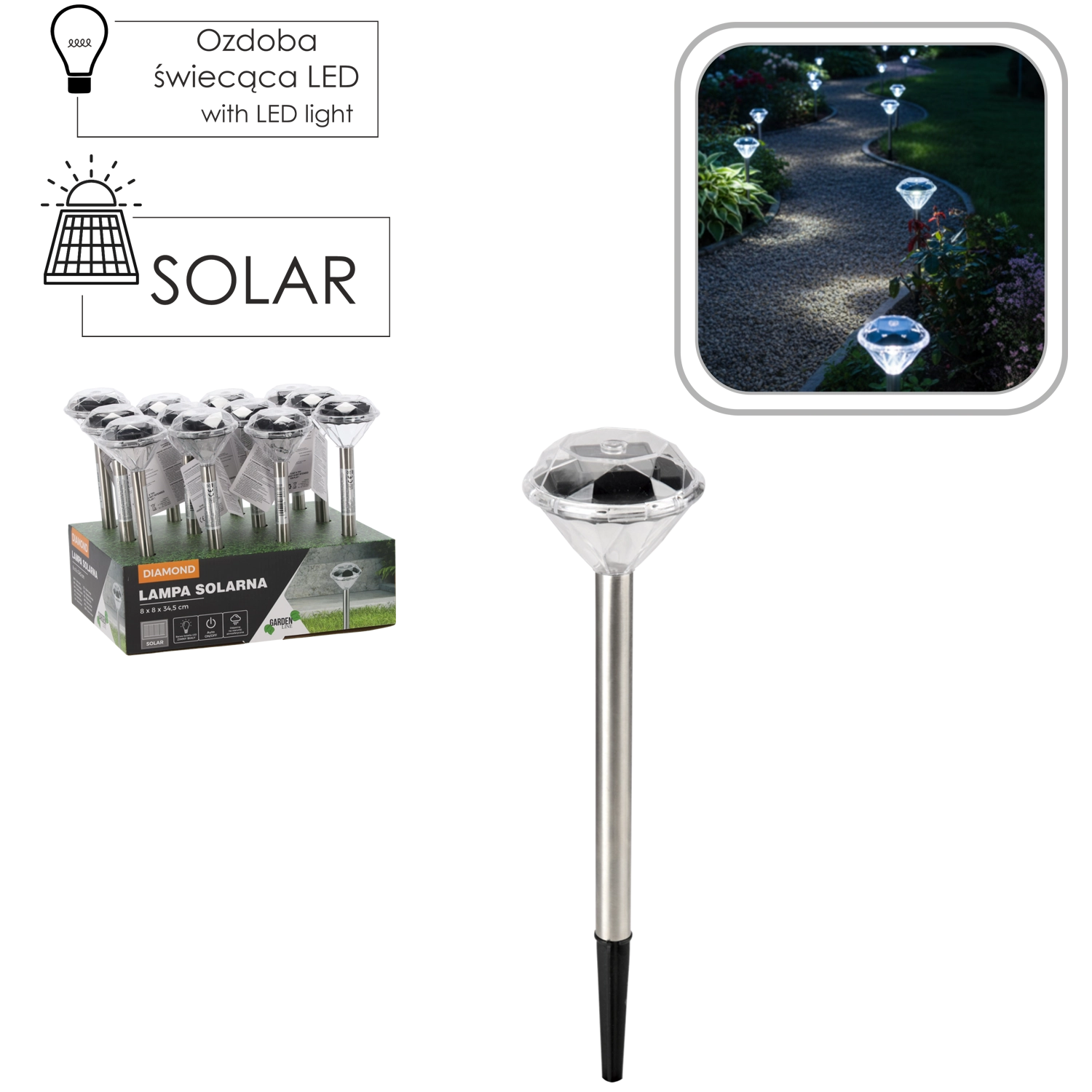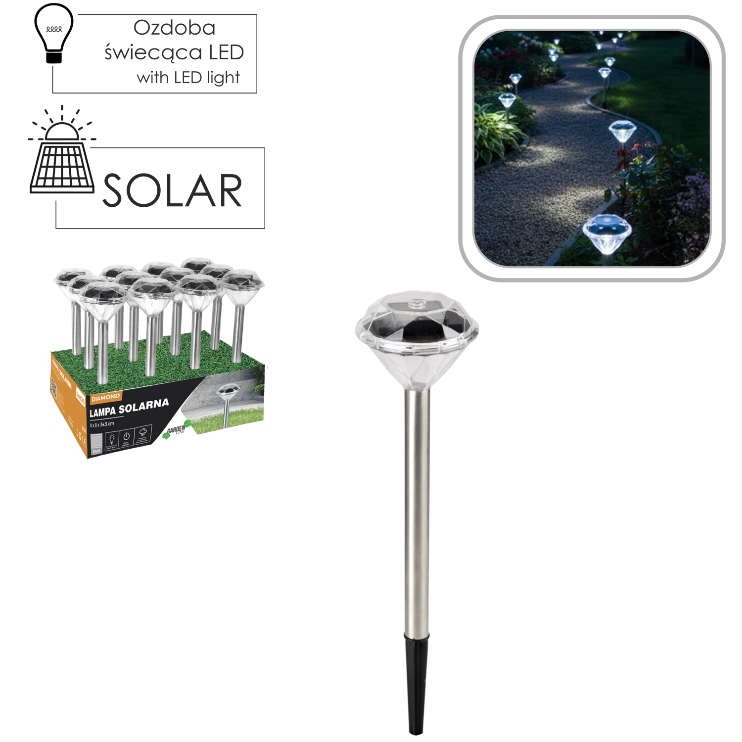 Stilska solarna svetilka DIAMOND z belo LED je idealna za osvetlitev vrtnih poti, teras in dovozov. Zahvaljujoč napajanju s soncem je brezžična, varčna in odporna na vremenske vplive (IP44). Nerjavno jeklo v satenasti barvi in enostavna namestitev z talnim klinom zagotavljata hitro in elegantno rešitev za zunanjo razsvetljavo brez dodatnih stroškov.