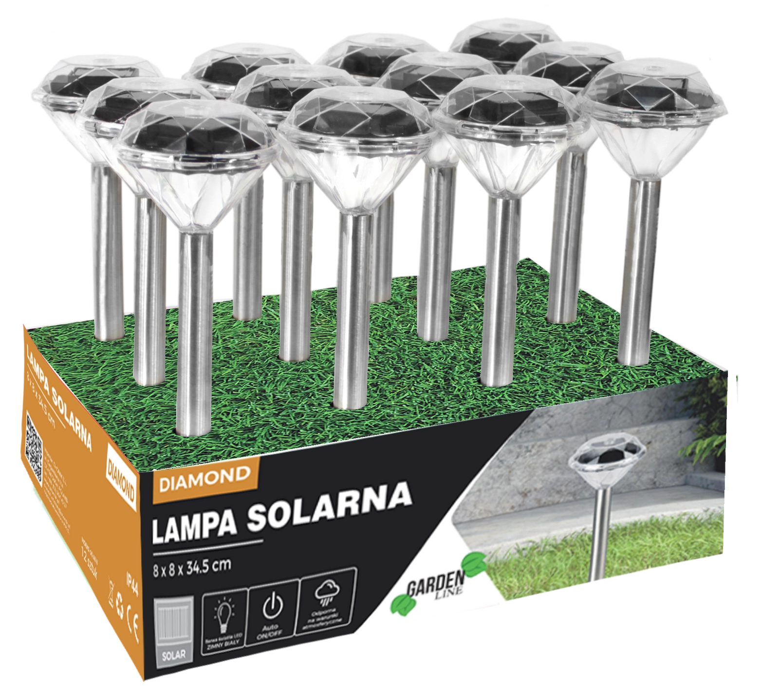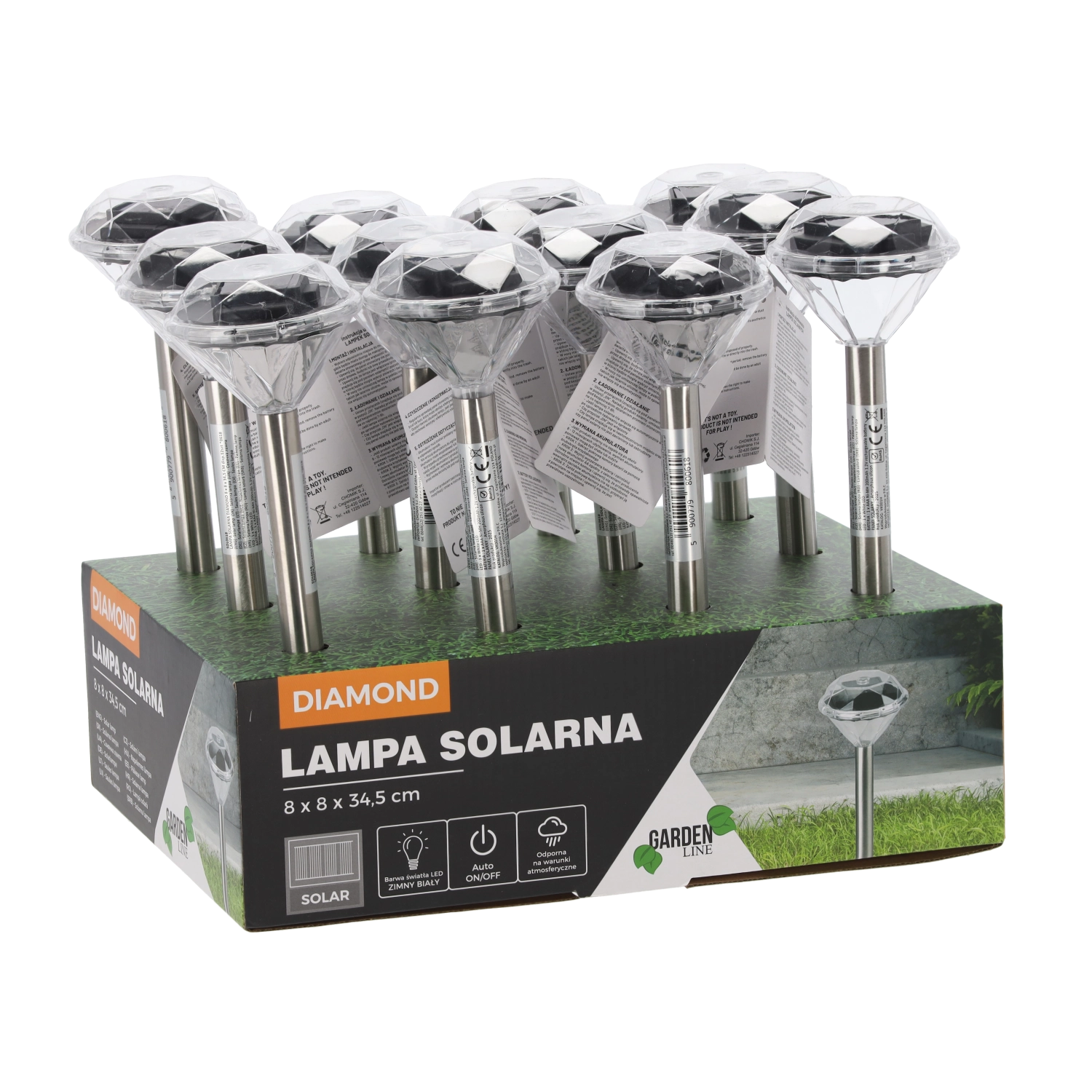 Solarna vrtna svetilka Diamond prinaša diskretno in prijetno belo svetlobo tja, kjer jo potrebujete – ob poteh, okoli terase, verande ali v bližini okrasnih gred in vodnih elementov. Vgrajen amorfni solarni panel čez dan polni baterijo, zvečer pa se svetilka samodejno prižge, zato uživate v brezvzdrževalni in okolju prijazni razsvetljavi.