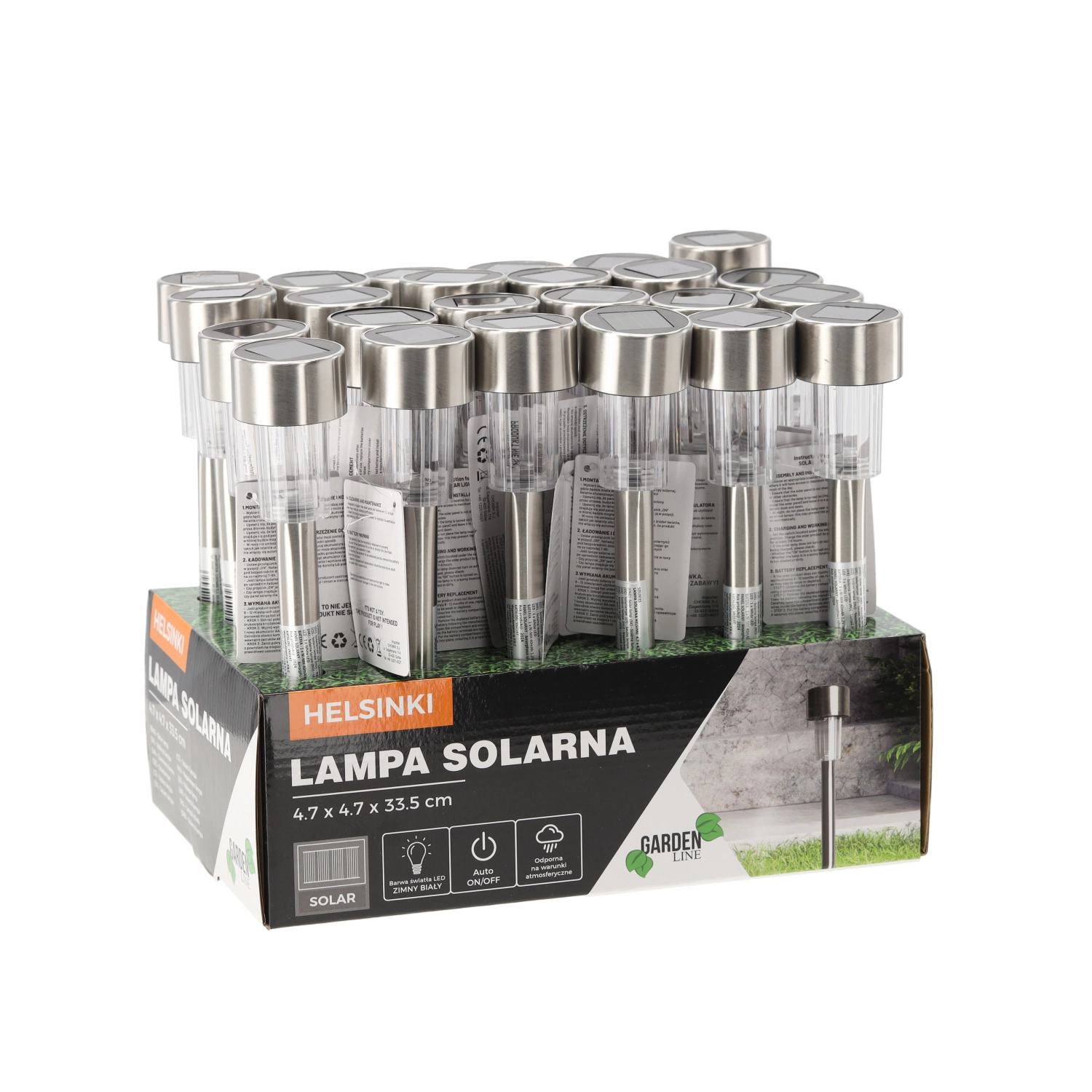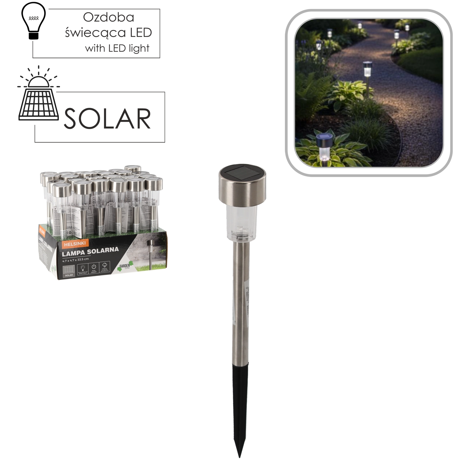 Ustvarite prijetno vzdušje na vrtu s sončno svetilko HELSINKI iz linije Garden Line. Svetilka se čez dan polni s pomočjo amorfnega sončnega panela, po temi pa se samodejno prižge bela LED. Enostavna namestitev na zabodni kolik omogoča postavitev kjerkoli, kjer je dovolj sonca.
