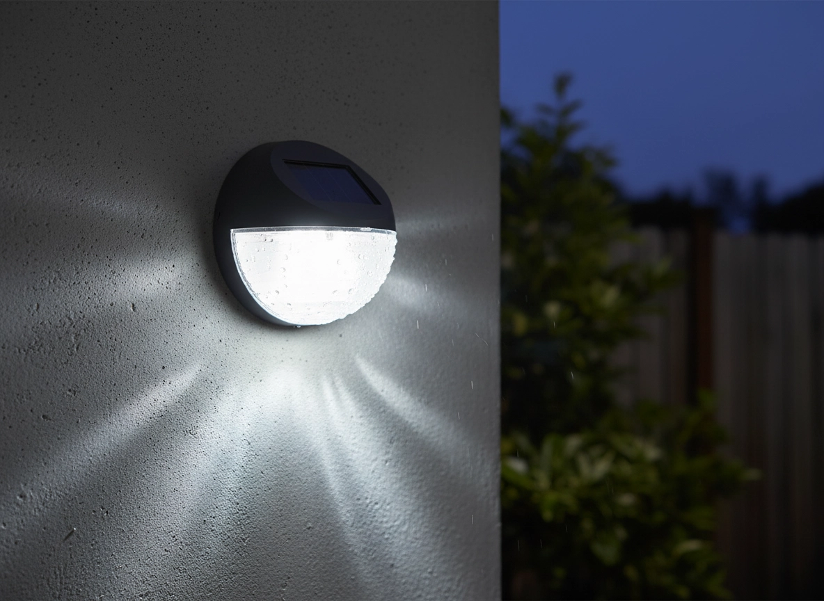 Vgrajen amorfni sončni panel (54 × 31 mm) podnevi polni akumulator in po mraku zanesljivo prižge 2 beli LED. Brez kablov, brez računov za elektriko.