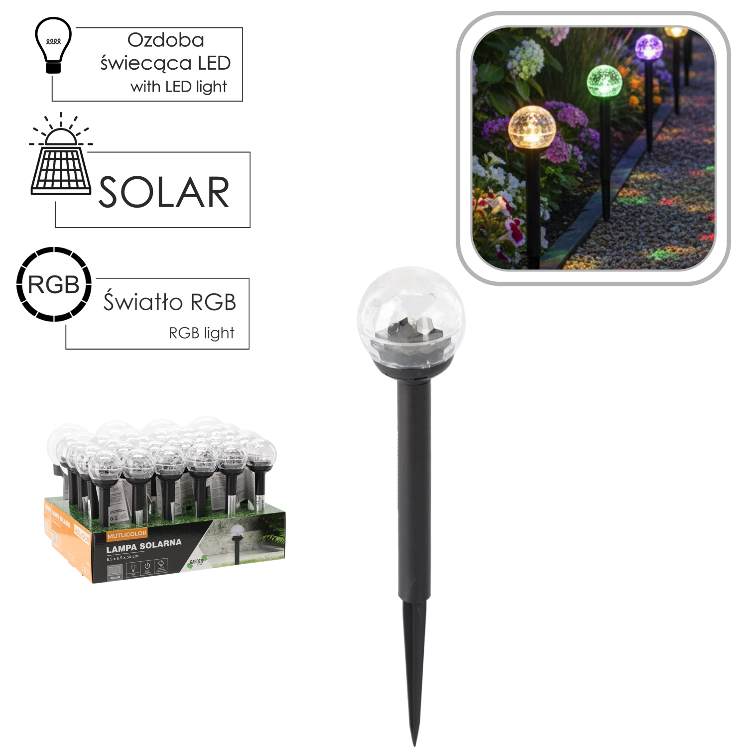 Ustvarite vzdušje na vrtu, terasi ali ob dovozni poti. Solarni svetilnik z RGB LED menja barve in poudari videz vrtne arhitekture, ribnikov ter rastlinskih kompozicij. Deluje popolnoma brez kablov – energijo pridobiva iz sonca, zato ne zahteva dodatnih stroškov.