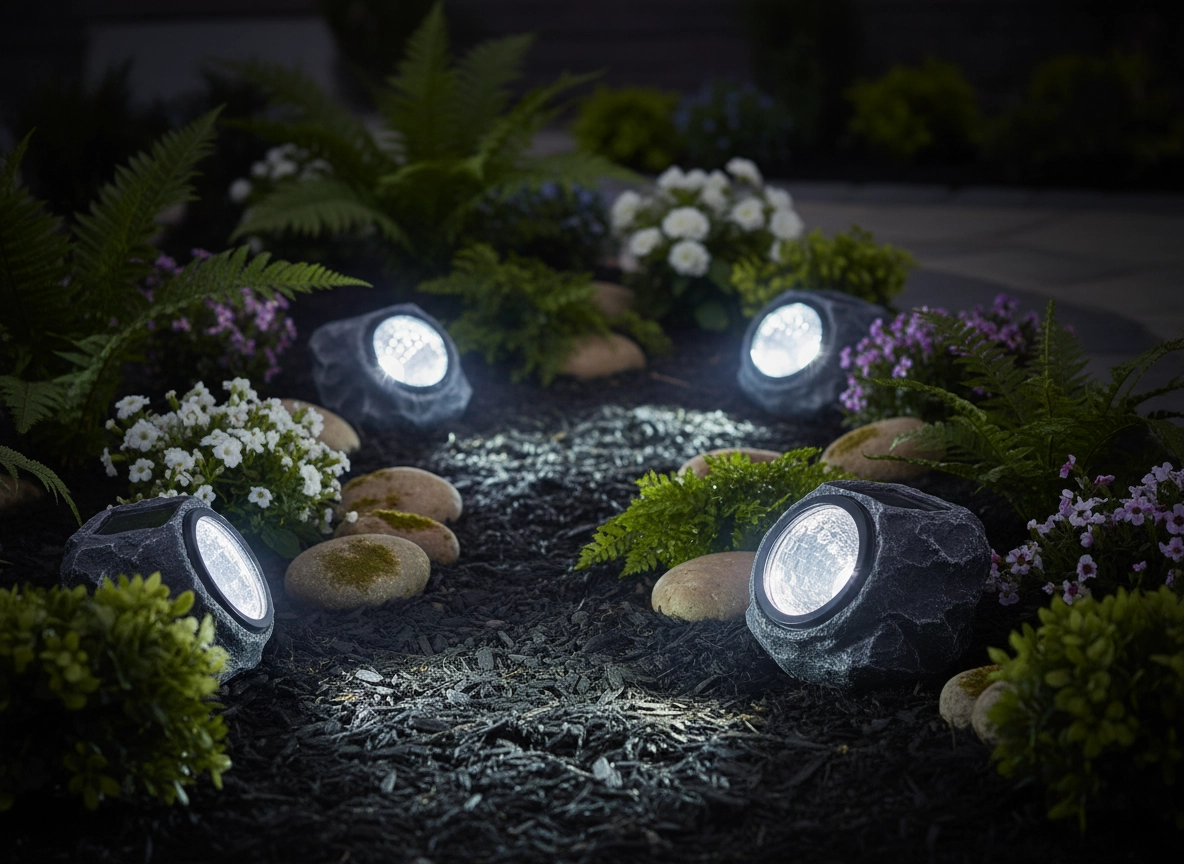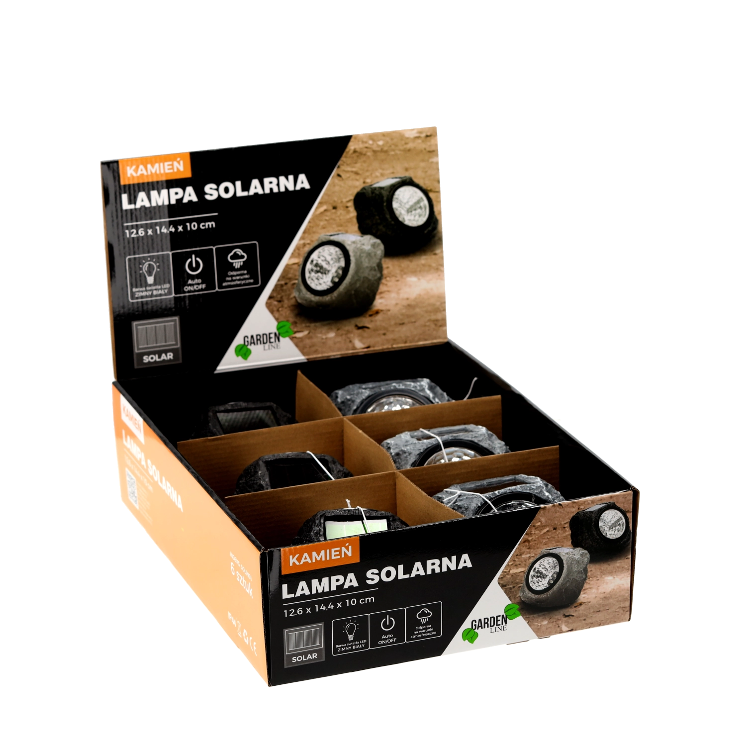 Sončna svetilka v obliki naravnega kamna se odlično zlije z okoliškim zelenjem in vrtno arhitekturo. Idealna je za osvetlitev poti, gredic, ribnikov ali robov terase. Amorfni sončni panel čez dan neprekinjeno polni akumulator, zvečer pa svetloba samodejno ustvari prijetno vzdušje brez potrebe po vzdrževanju.