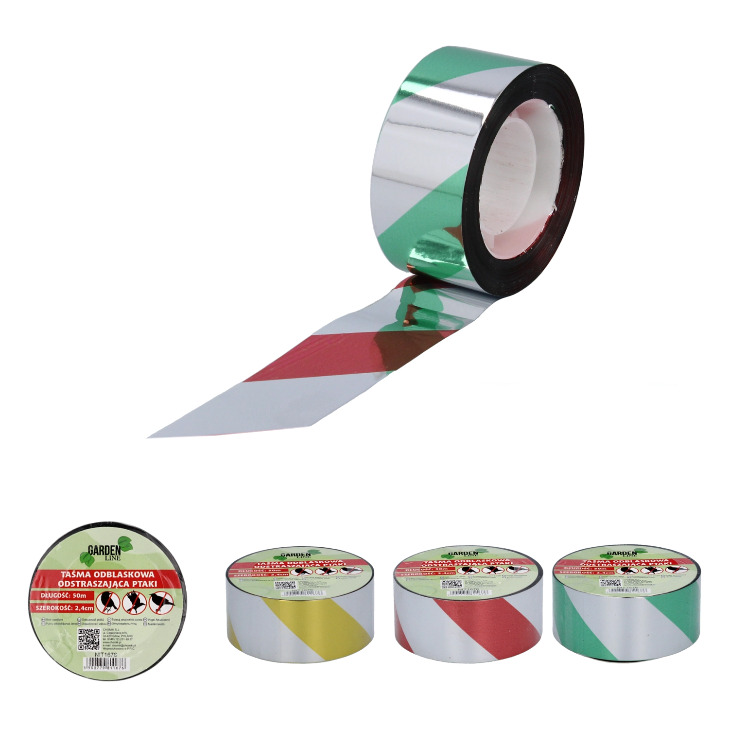 Refleksni trak za odganjanje ptic 50 m × 2,4 cm, mešanica barv